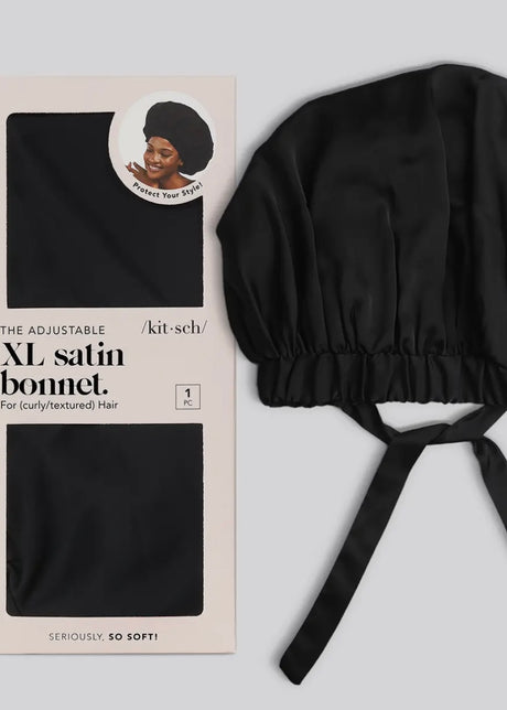 Satin Sleep Xl Adjustable Bonnet - Black