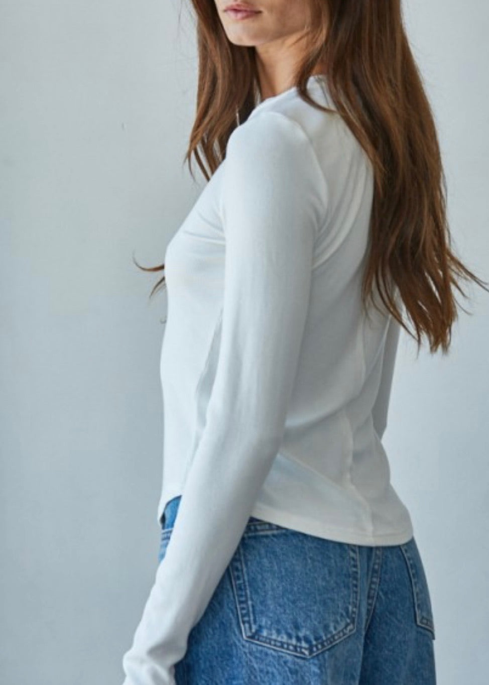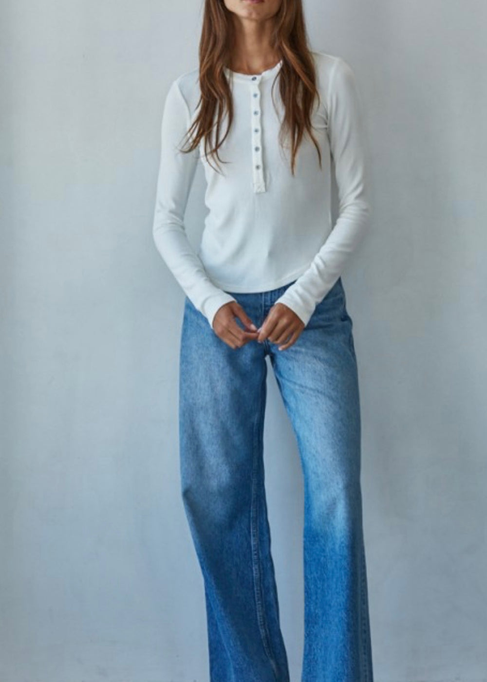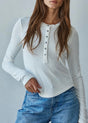 The Barry Henley features a ribbed crew neck design with long sleeves and a half-button placket. Crafted from a blend of 47% rayon, 43% acrylic, 5% wool, and 5% spandex, this knit top offers both comfort and flexibility with a refined texture.