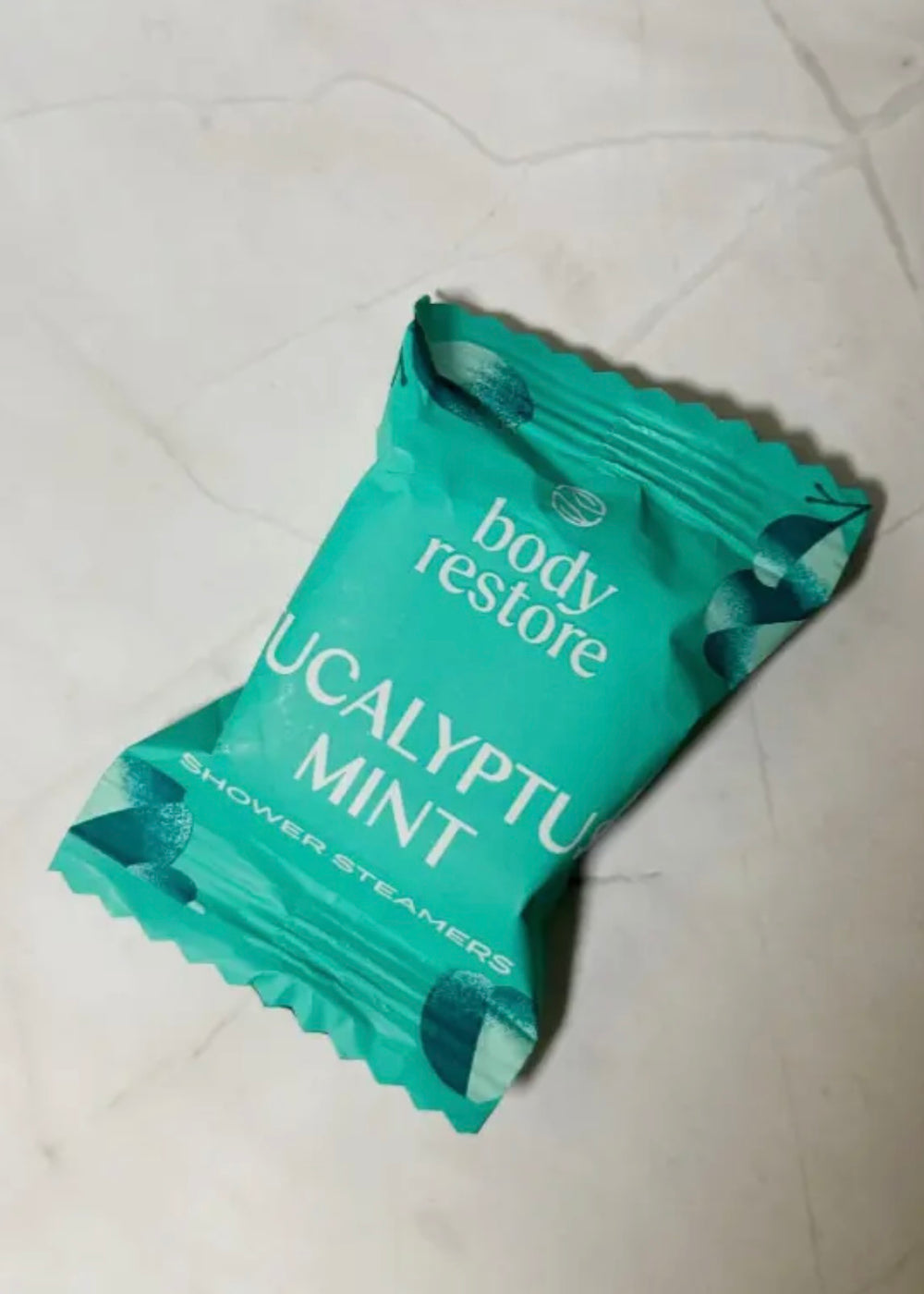 Body Restore Shower Steamers are proudly made in the USA with natural essential oils and clean ingredients, ensuring a pure and safe aromatherapy experience. Each steamer comes in high-quality packaging, delivering a strong and refreshing natural scent that enhances your self-care routine. Features Clean natural ingredients High quality essential oils Recyclable packaging material Long lasting scent How to use Step 1: Position one steamer on the shower floor, away from direct water flow but where it can be gently splashed. Step 2: Allow warm water to activate the steamer, releasing invigorating eucalyptus and mint vapors. Step 3: Step into the aromatic steam, inhale deeply, and enjoy a refreshing, spa-like experience.