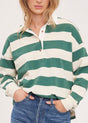 The Britt Sweater is a polo-style, striped pullover