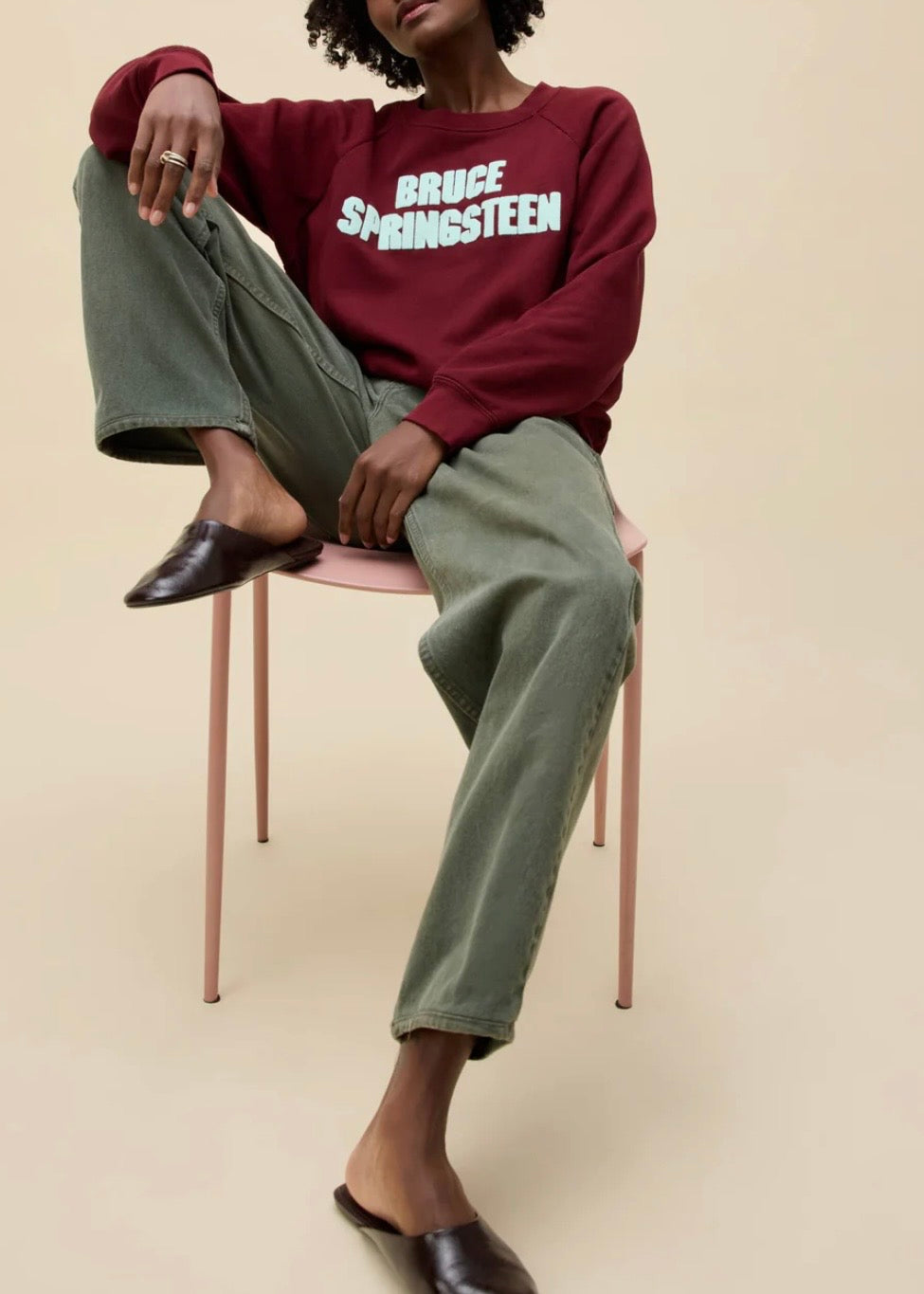 Rep the unforgettable era of Bruce Springsteen's anthemic sound. The Boss' name is hand-flocked onto our Vintage Raglan Sweatshirt honoring the American spirit he sparked.