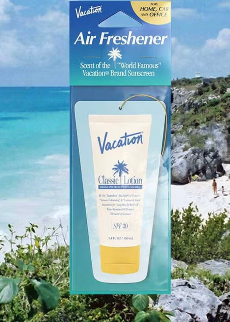 The scent of the “World’s Best-Smelling Sunscreen” conveniently diluted into air freshener form. Make your car, home, office or waterbed smell like sunscreen and summer.