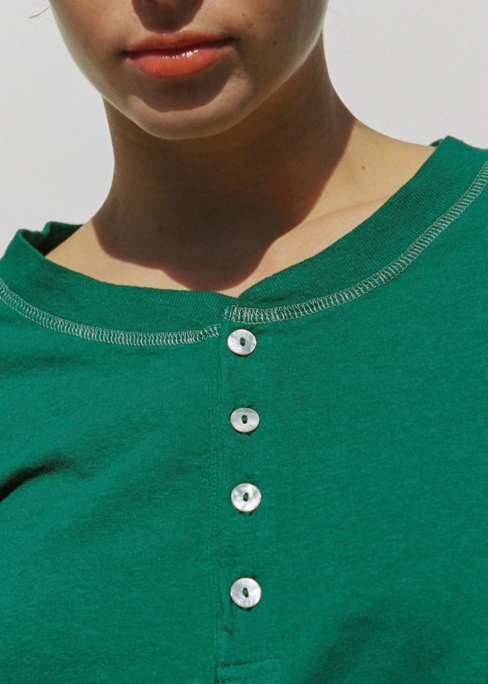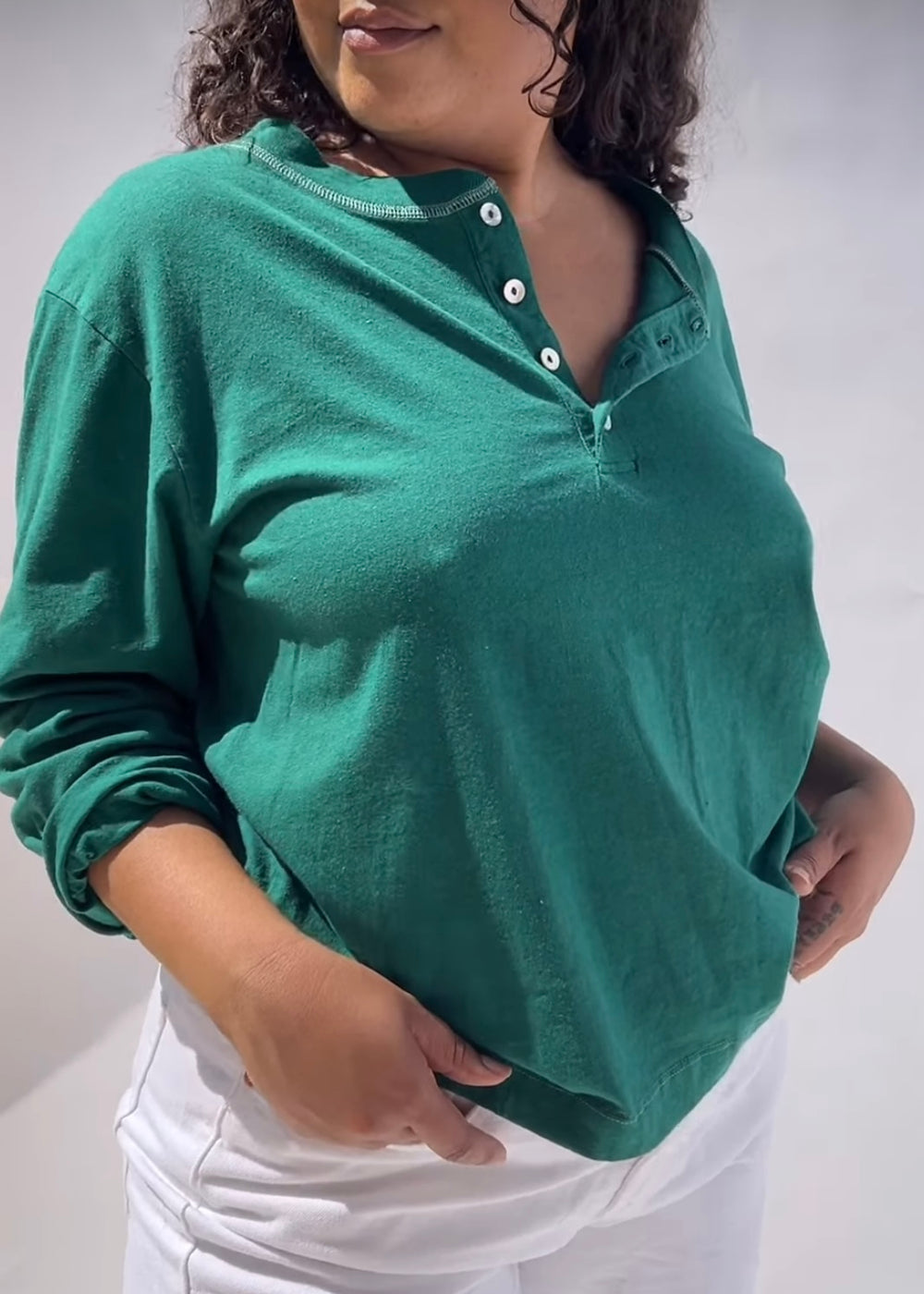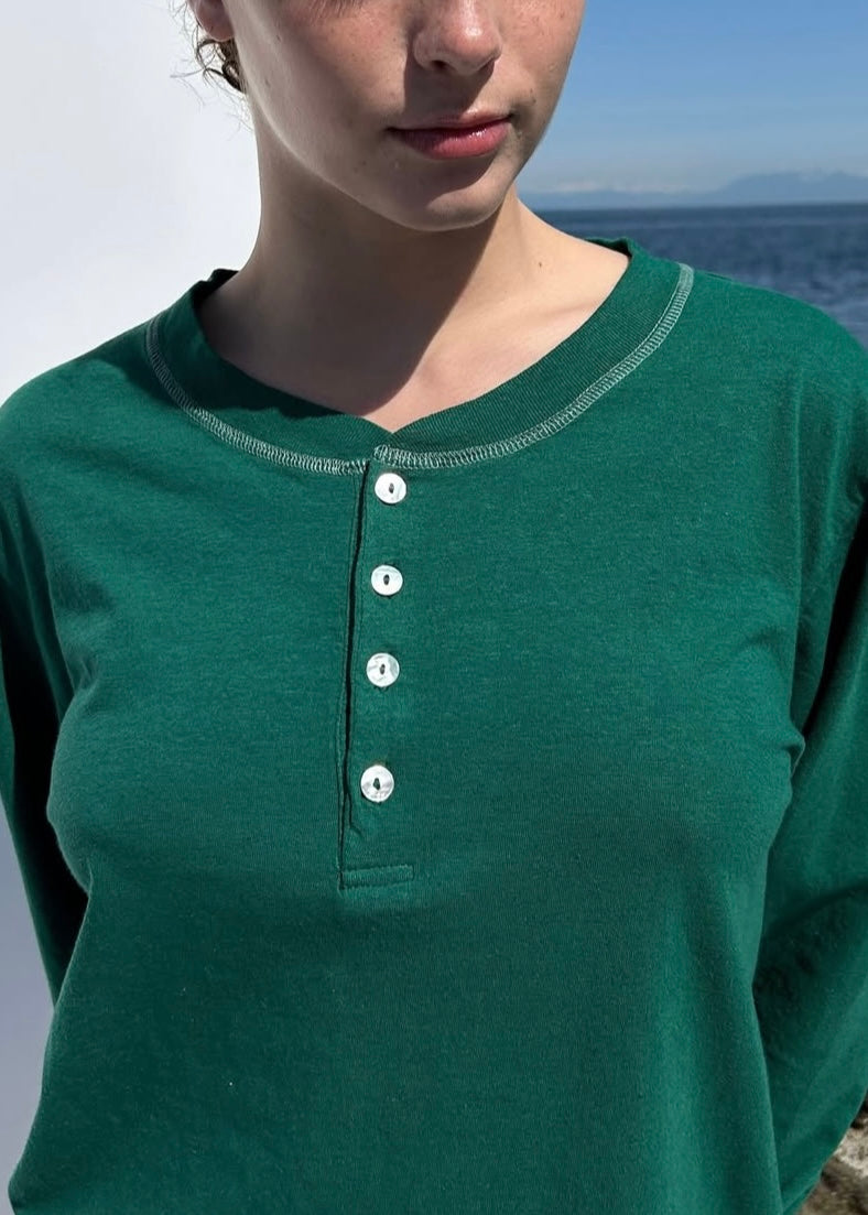 The newest addition to our hemp family, the Bay Henley is inspired by our most-worn vintage long sleeve. With elevated shell buttons and an easy, comfortable fit, it’s a must-have basic that styles effortlessly.