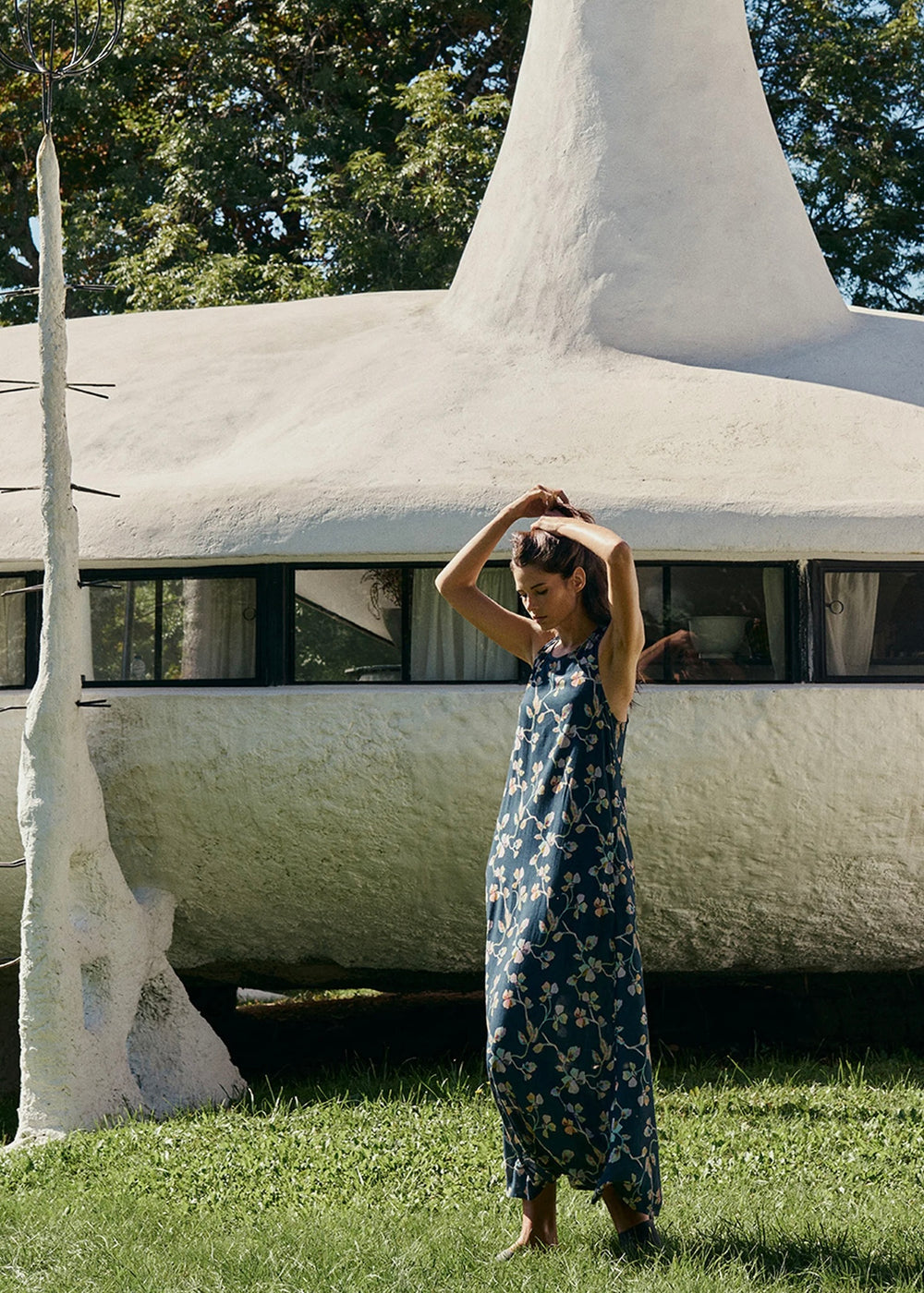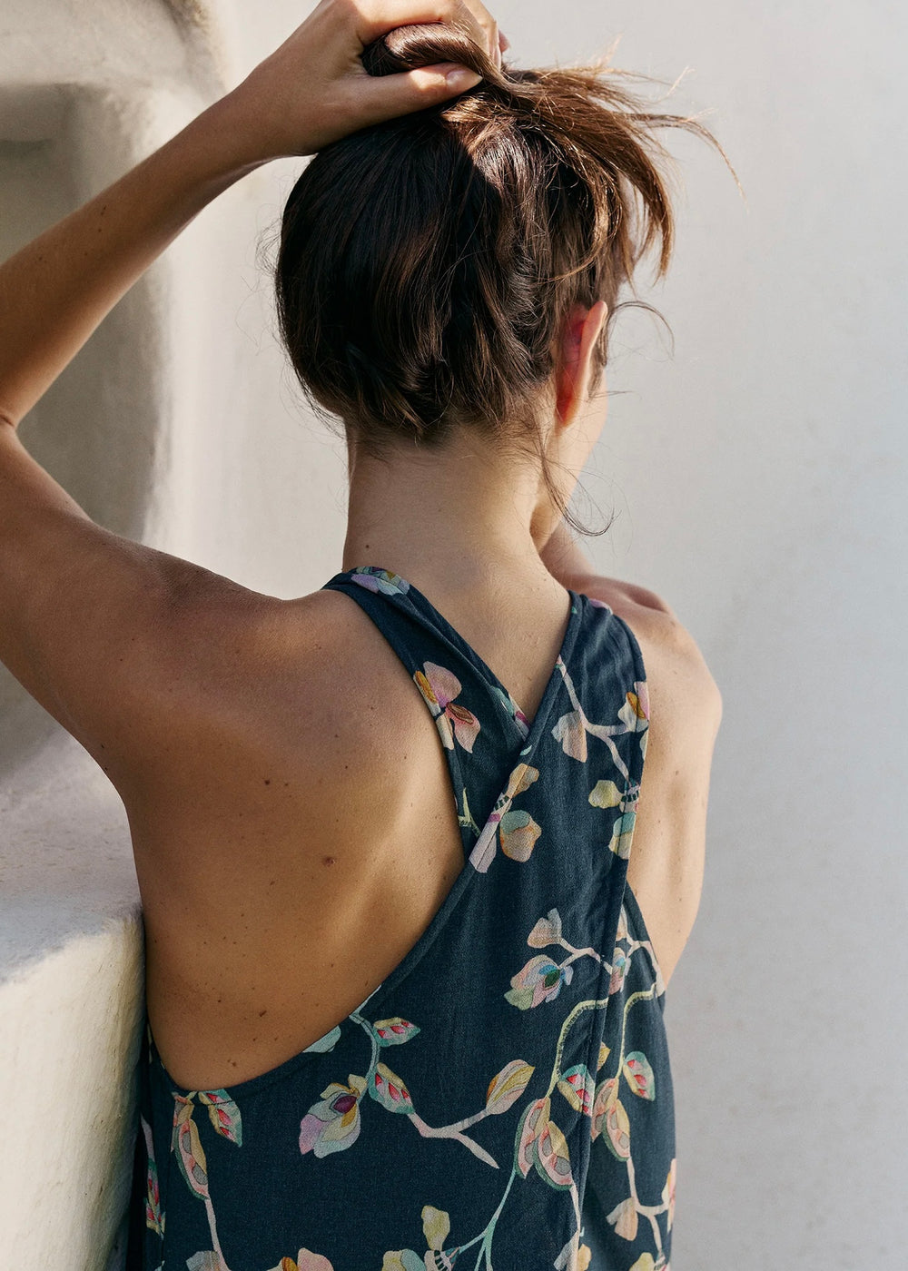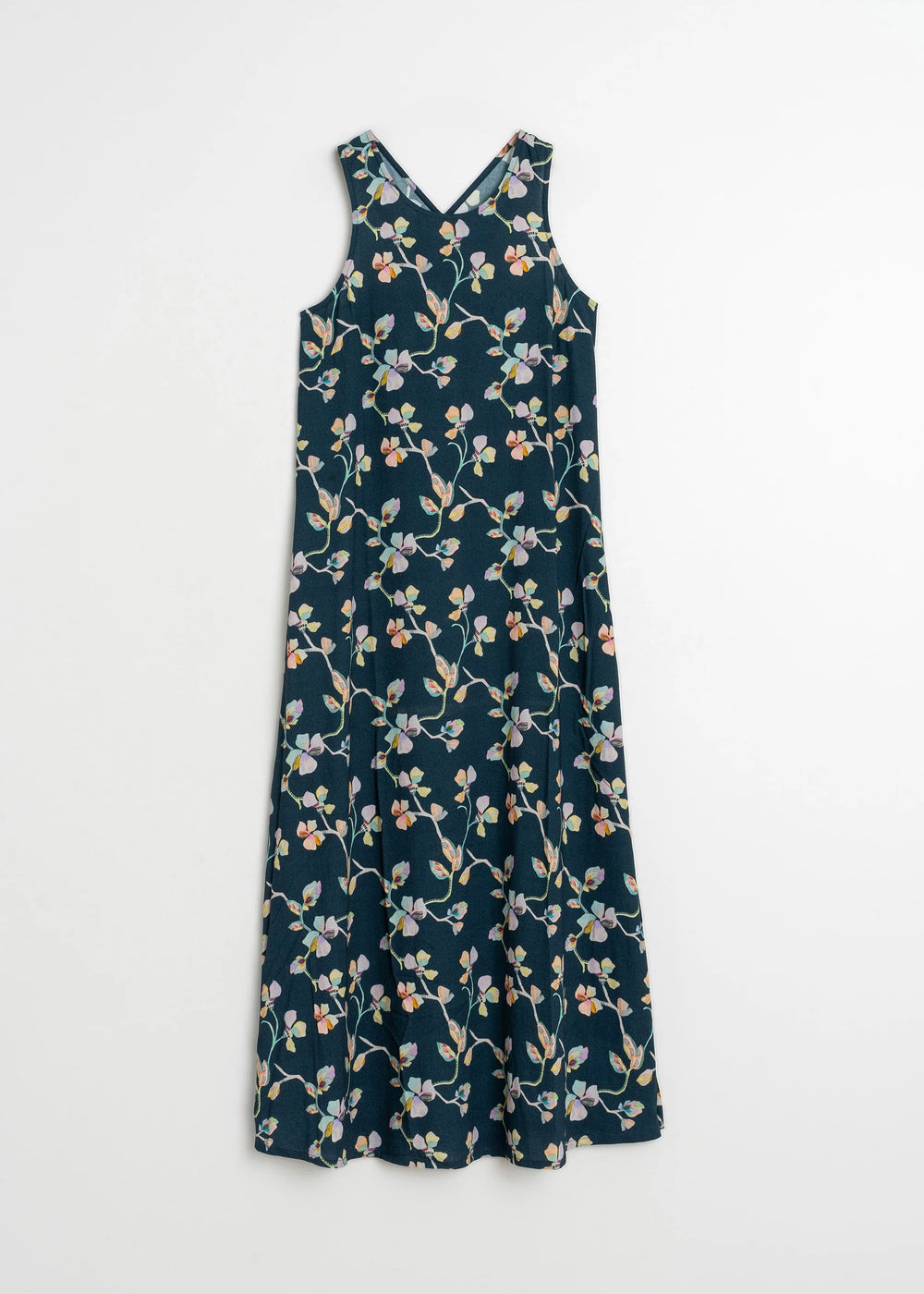 Maxi dress with a crossover neckline at the back. Fitted at the top and flowy at the bottom. Created with sustainable viscose fabric in a floral print.