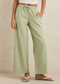 The Dolly Beach Pant in Palm is designed for ultimate comfort, featuring a wide leg, elastic waist with self-drawcord, and a lightweight relaxed fit.