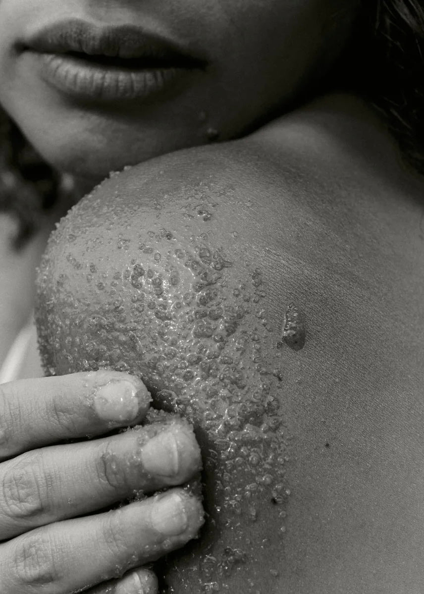 Instructions for a simple ritual: Use gentle and smooth motions to massage onto body in bath or shower. Rinse off sugar granules and massage remaining oil into skin for more intense moisture.