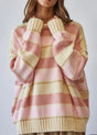 Wrap yourself in effortless spring style with the Ember Stripe Sweater. This cozy cotton-blend knit features a relaxed oversized fit with dropped shoulders that feel like a warm hug. Soft pastel stripes in pink, cream, and butter yellow create a cheerful, uplifting look that transitions beautifully from chilly mornings to sunny afternoons. The crew neckline and chunky ribbed cuffs keep things playfully put-together, while the oversized silhouette lets you layer with ease. Whether you're running errands or settling in for a casual day, this sweater brings comfort and color to your everyday rotation.