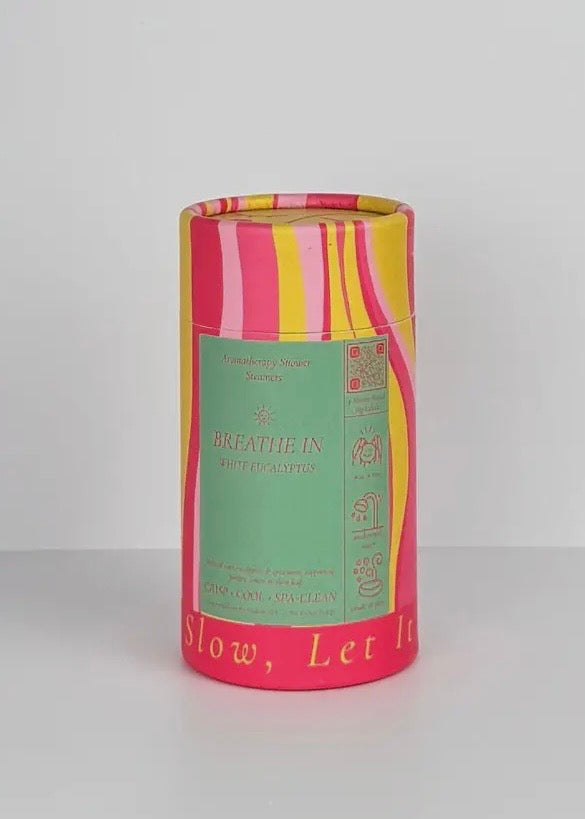 White Eucalyptus shower steamer — refreshing aromatherapy shower melt for clarity and stress relief. Cool, spa-like steam that resets your head and mood. ☀️ Breathe In opens with a cool marine breeze and spearmint lift before fresh eucalyptus takes center stage; sea salt and juniper finish clean and tranquil. Clear the fog and breathe deeper. Breathe In — White Eucalyptus shower steamers • Scent & Mood: Crisp • Cooling • Fresh • What you get: luxury paper tube with 4 XL shower steamers · Net wt 4x2 oz (226 g). • How to use: Unwrap, place in tray/floor – drizzle water – breathe in the aromatherapy. • Gifting: Perfect stocking stuffer, spa party favor, self-care gift. • Clean & small-batch: Made in USA • small-batch • playful, giftable packaging. ✨ 𝐅𝐫𝐚𝐠𝐫𝐚𝐧𝐜𝐞 𝐒𝐭𝐨𝐫𝐲: • Top: Marine, Spearmint & Lemon • Middle: Eucalyptus • Base: Sea Salt, Powder, Juniper Infused with essential oils: eucalyptus, spearmint leaf, juniper, nutmeg, lemon, clove leaf. ☀️️ From sunrise to post-workout, reach for crisp clarity: eucalyptus essential oil, brightened with spearmint, juniper, and lemon, turns your shower into a mini spa. • How many uses? One shower, longer if placed on edge, away from full stream. • Safe for skin? For shower aromatherapy only; not a bath bomb. • Tray? Works best with a shower steamer tray/holder (we offer one). https://www.faire.com/product/p_nwcyu4vkcq?refB=b_wkdxfjw2we • Time-of-day is a vibe, not a rule—use anytime you crave this mood.