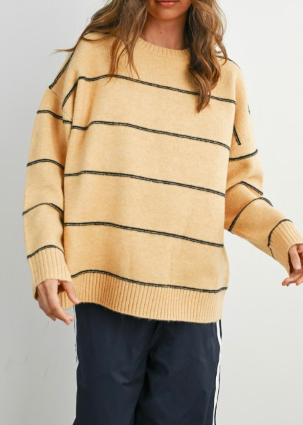 Evergreen Stripe Sweater - S / Butter is backordered and will ship as soon as it is back in stock.