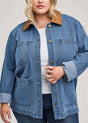 The Flynn jacket is made of a heavy weight denim fabric that has been specially washed for a perfectly lived-in look. The effortless silhouette features patch pockets and a contrast corduroy collar.