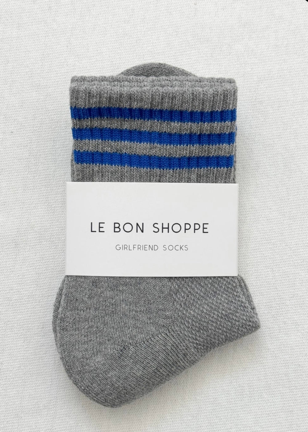 The cool, quarter-crew version of the signature Boyfriend Socks. The Girlfriend Socks feature a contrast triple stripe, mesh along the top of the foot for breathability, and elastic arch support. They're a universally quintessential sock and especially flattering for our petite ladies, great for every day wear.