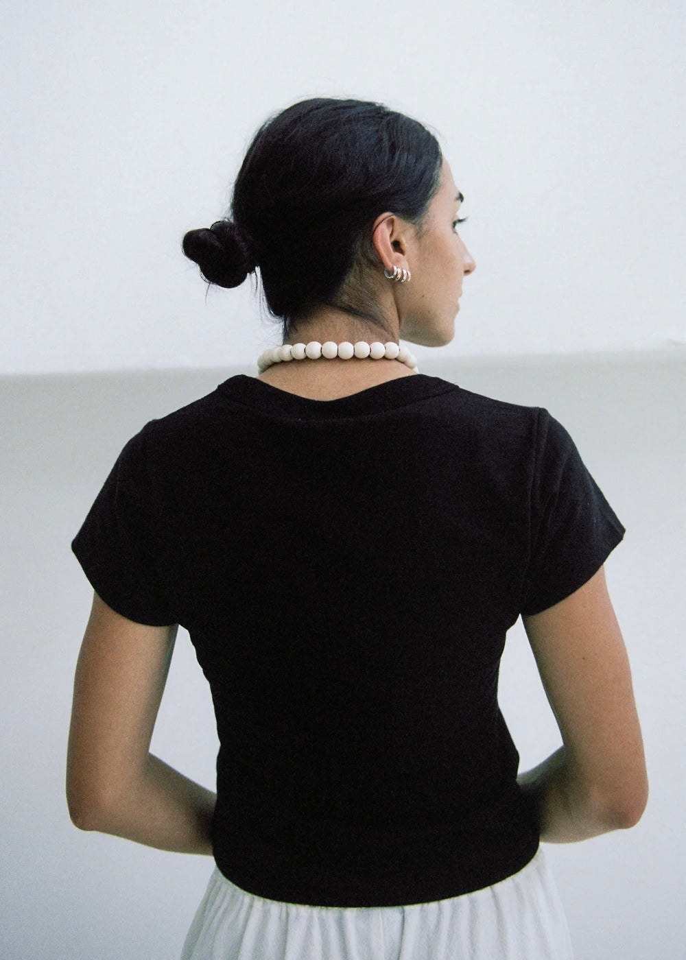 A snug little t-shirt to complement our hemp collection. The short sleeves are designed for an ideal fit (not too short, not too long), while the slightly cropped length offers versatile styling options. This piece transitions seamlessly between baggy or fitted bottoms. True-to-size fit that starts snug and gradually relaxes with wear.