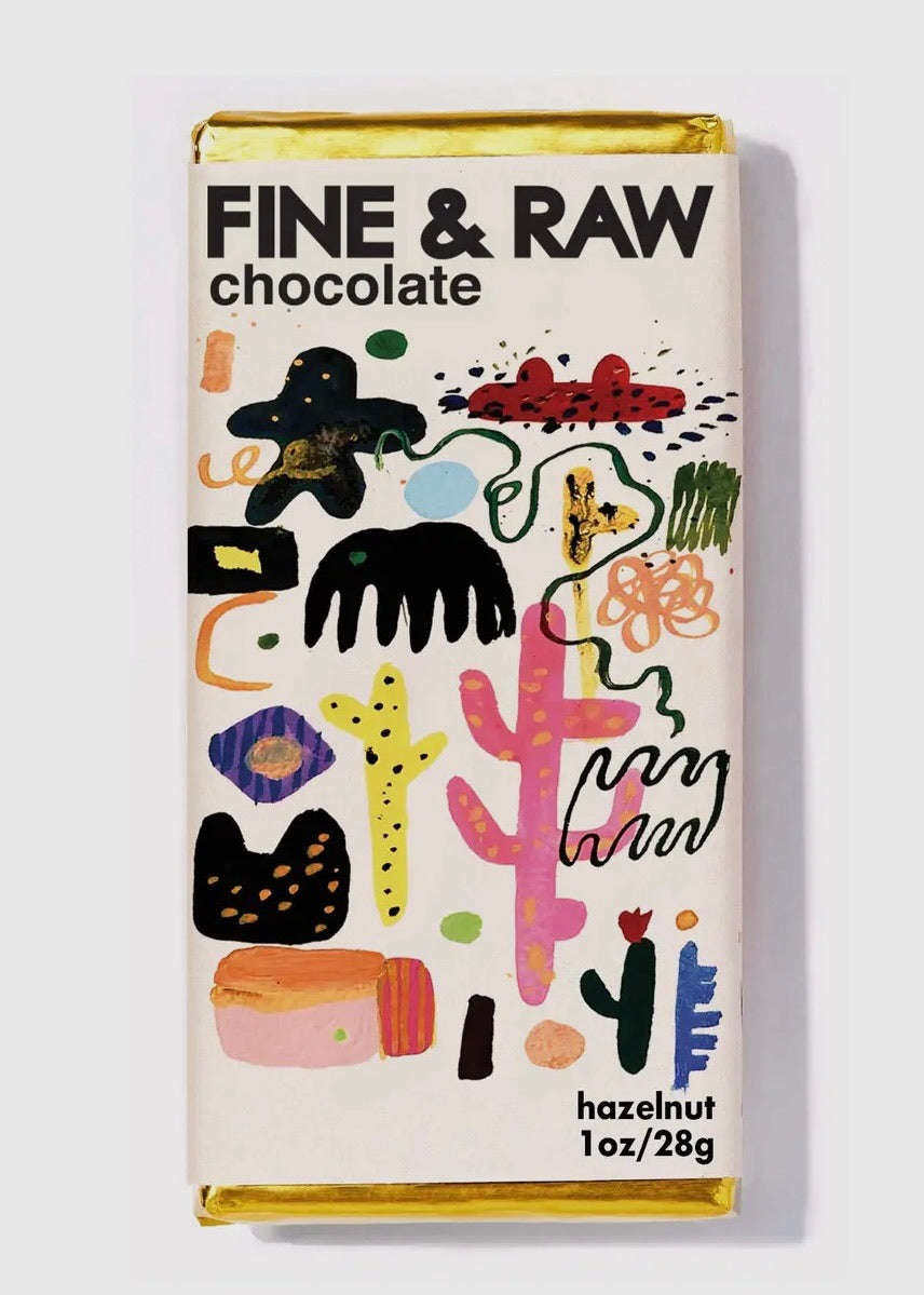 Hazelnut Butter Bar — Holiday Magic, Unwrapped For the gifting season, it doesn’t get more decadent than this: we roast the world’s finest Pacific Northwest hazelnuts, turn them into our own silky hazelnut butter, and blend it with rich dark chocolate. The result? A nutty, creamy bar that’s so good it’s our team’s all-time favorite. Perfect for stockings, party favors, or a little self-gifting (we won’t tell). Art Meets Chocolate Wrapped in bold, joyful artwork by Kindah Khalidy (@kindahKhalidy)—painter, textile designer, and color alchemist. Her vibrant abstracts have graced Vans, Nordstrom, Anthropologie, and gallery walls alike. This bar is as much eye candy as it is real candy.