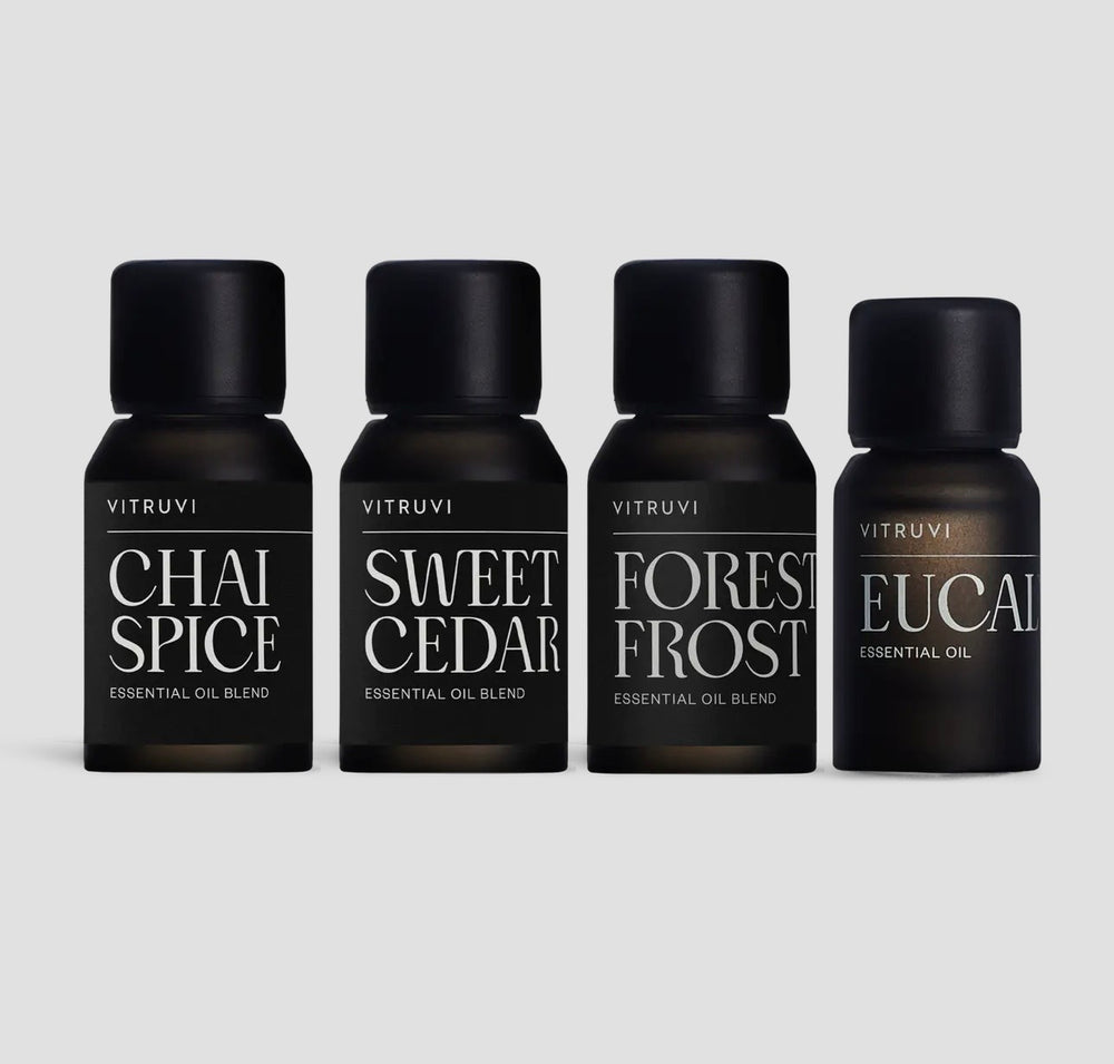 A thoughtful collection of timeless, heartfelt essential oil blends designed to bring comfort, clarity, and calm during the colder months. Featuring four seasonal favorites—warming Chai Spice, grounding Cedar Air, crisp Forest Frost, and fresh Eucalyptus—this set evokes the feeling of coming in from the cold. Ideal for slow mornings, quiet nights, and cozy days at home, these scents offer a candle alternative experience your customers will love. Perfect for fall resets, holiday gift sets, and Christmas gifting, this kit makes a versatile and elevated addition to your seasonal assortment. Included Scents: Chai Spice 15ml Sweet Cedar 15ml Forest Frost 15ml Eucalyptus 10ml