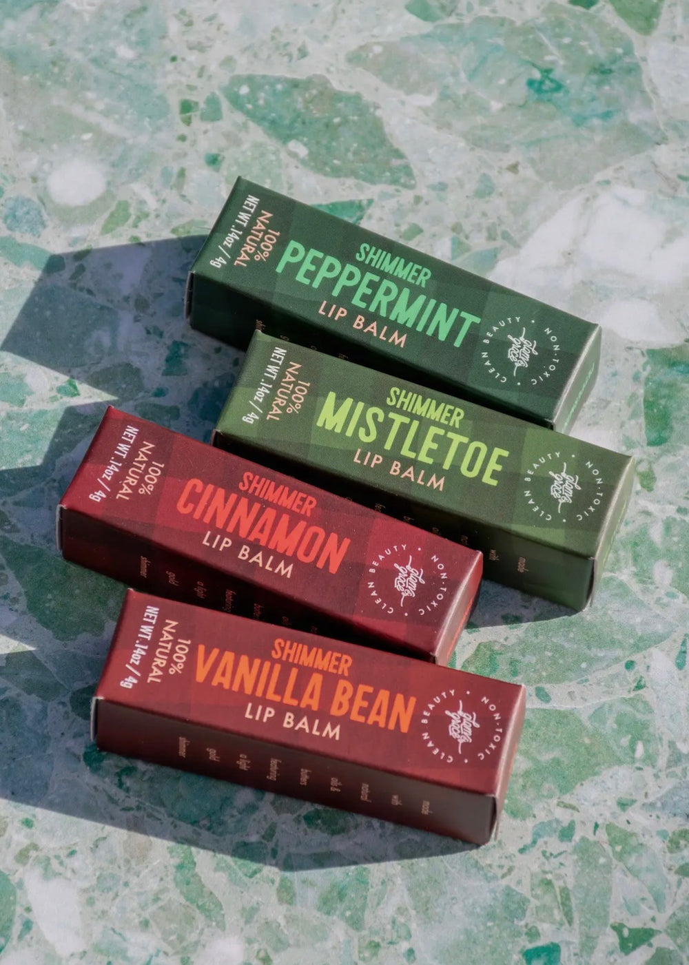 Holiday Shimmer Lip Balm - Cinnamon is backordered and will ship as soon as it is back in stock.