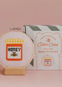 Honey Mini Cross Stitch Kit – Foodie-Inspired DIY Craft for Beginners (11cm Hoop) Sweet and satisfying, our Honey Mini Cross Stitch Kit is part of our popular food-themed mini collection – perfect for beginners, weekend makers, and modern crafters. Featuring a golden honey jar stitched onto coloured aida, this charming design is a lovely gift for foodies, beekeepers, or anyone with a soft spot for handmade crafts. Each kit includes everything needed: 11cm wooden hoop, embroidery thread, coloured aida fabric (not printed), blunt needle, wadding, full-colour cross stitch chart, instructions, and a backing disc for display.