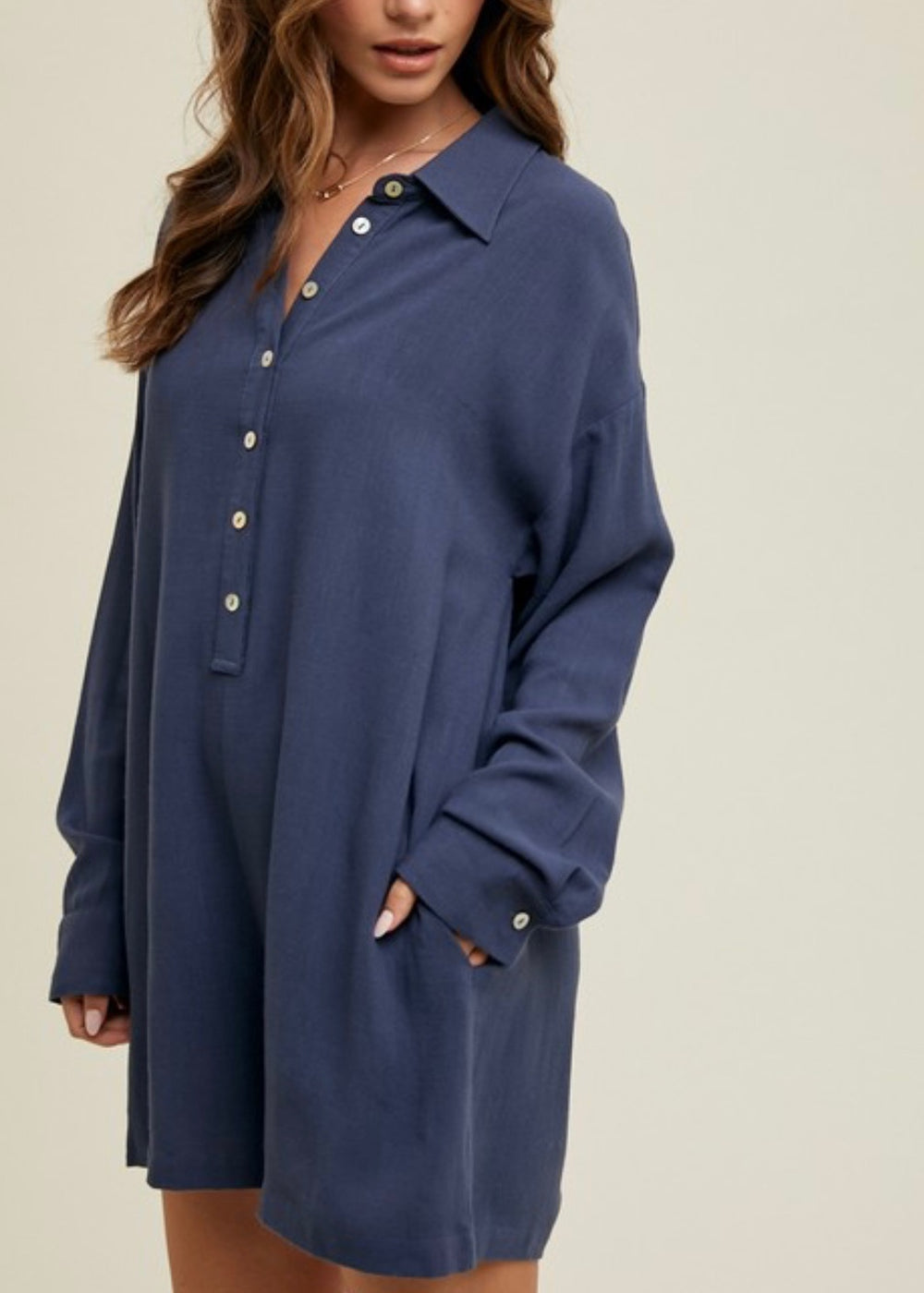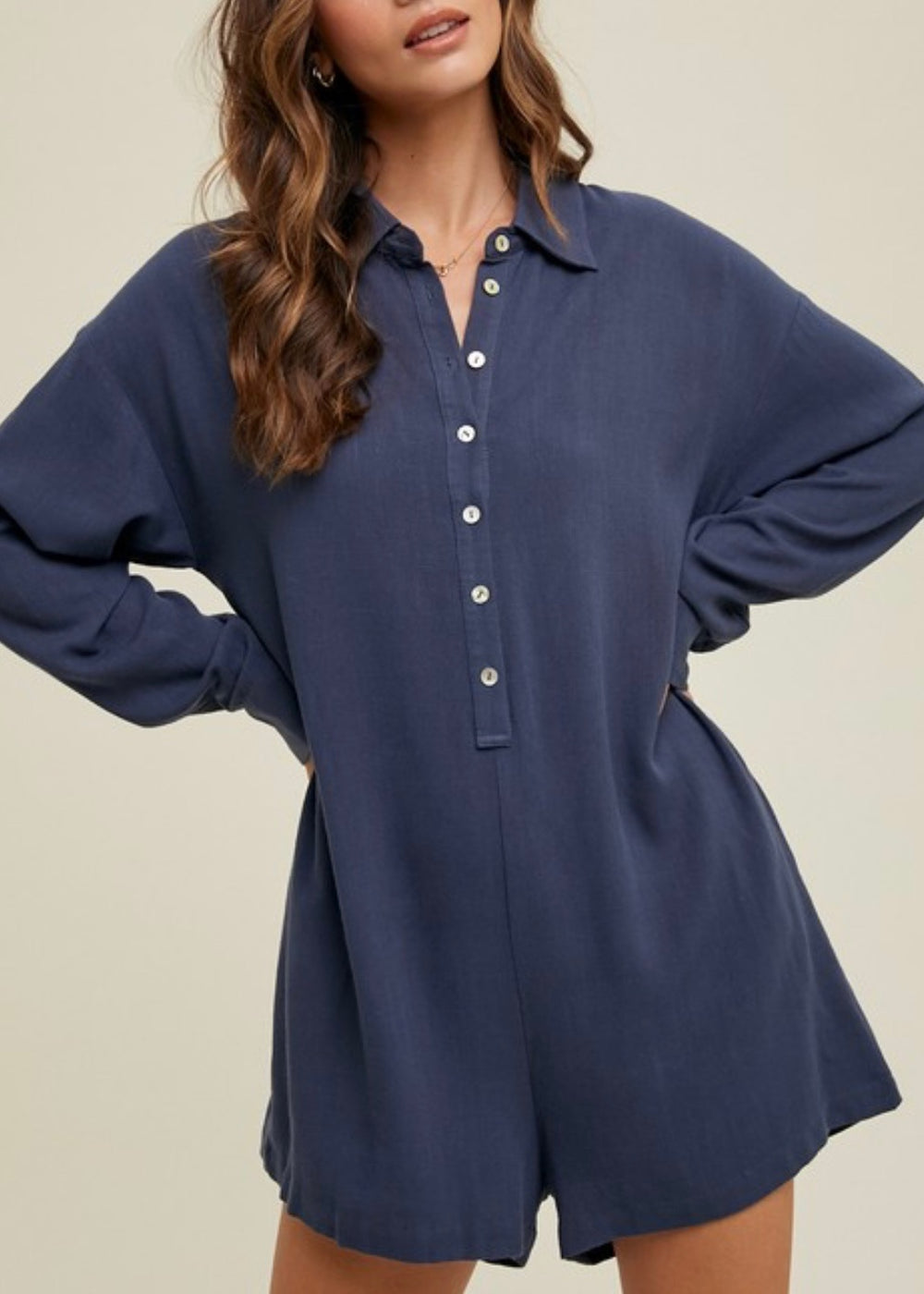 Get ready to romp around town in the Jenny Shorts Romper! This quirky romper features a functional button-up design, side pockets, and a lining made of 100% rayon. With a playful mix of 70% viscose and 30% linen, this romper is perfect for those who don't take themselves too seriously. The inseam length is 2 3/4", and our model is rocking a size Small. Don't miss out on this unique and fun addition to your wardrobe!