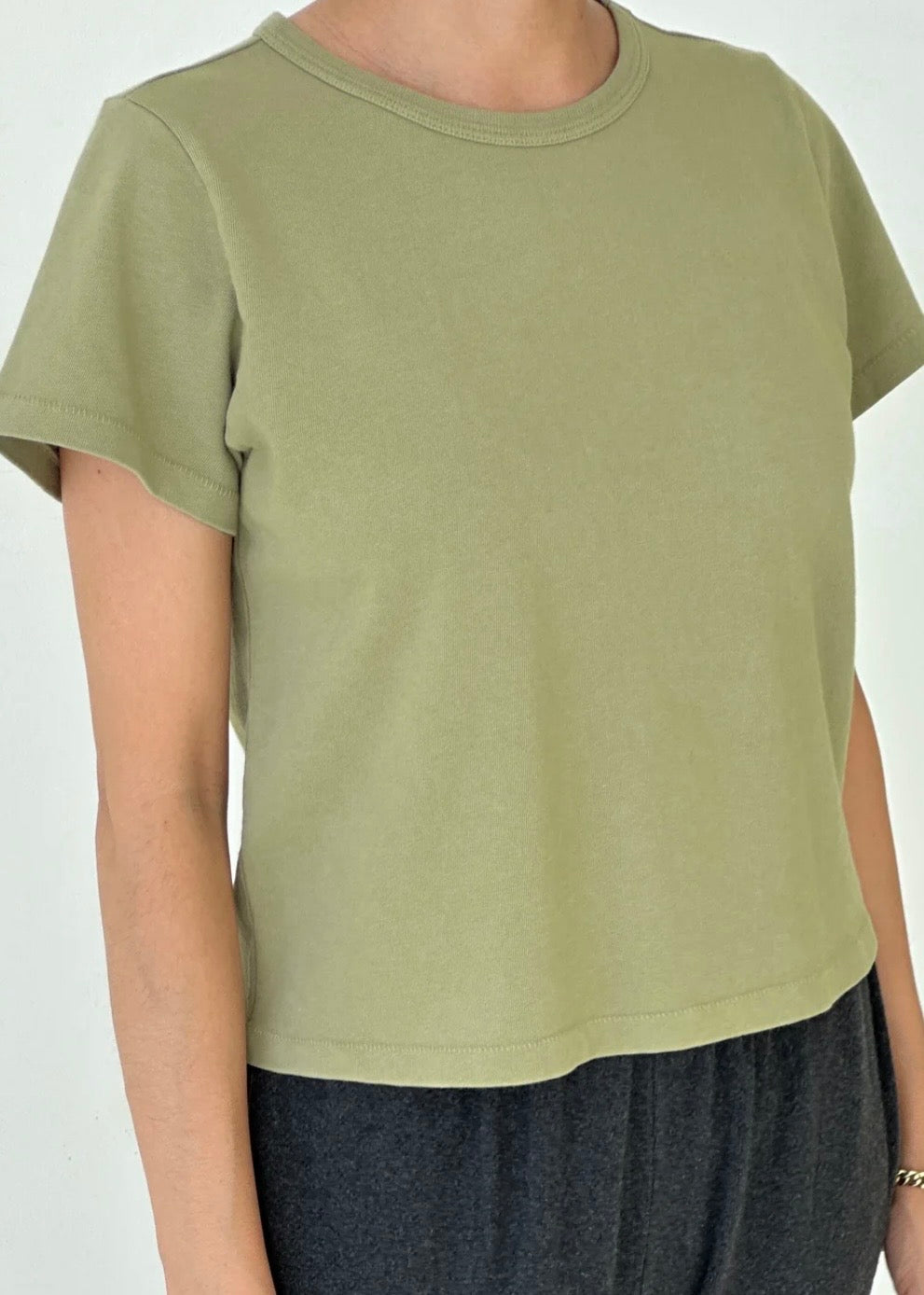 The quest for the perfect tee ends here. The first of its kind, The Little Boy Tee uses medium-weight 100% cotton premium jersey blend for a flattering slim fit with just the right amount of stretch. It features baby ribbed details and maintains a suitable cropped length. Consider this little tee the perfect piece to remain a cherished part of your wardrobe season after season. Garment washed and dyed, each tee shows off a beautiful natural worn-in look.