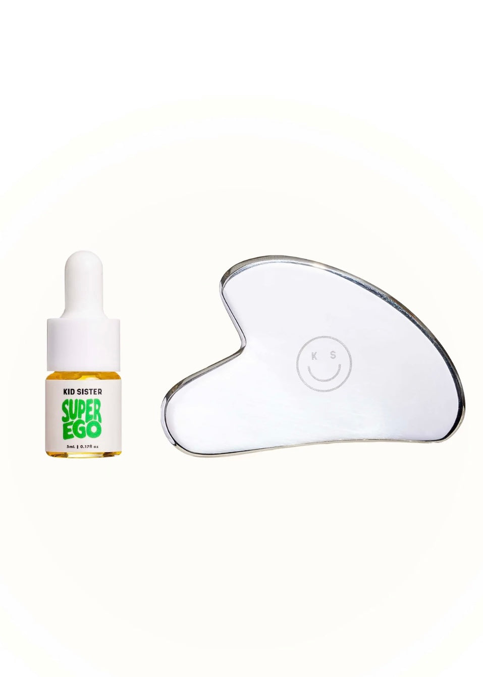 Comes with one 5ml Super Ego face oil and one stainless steel gua sha.