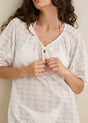 Sheer broderie Overswim Tie front detailing Short sleeve with elastic cuffs Not lined