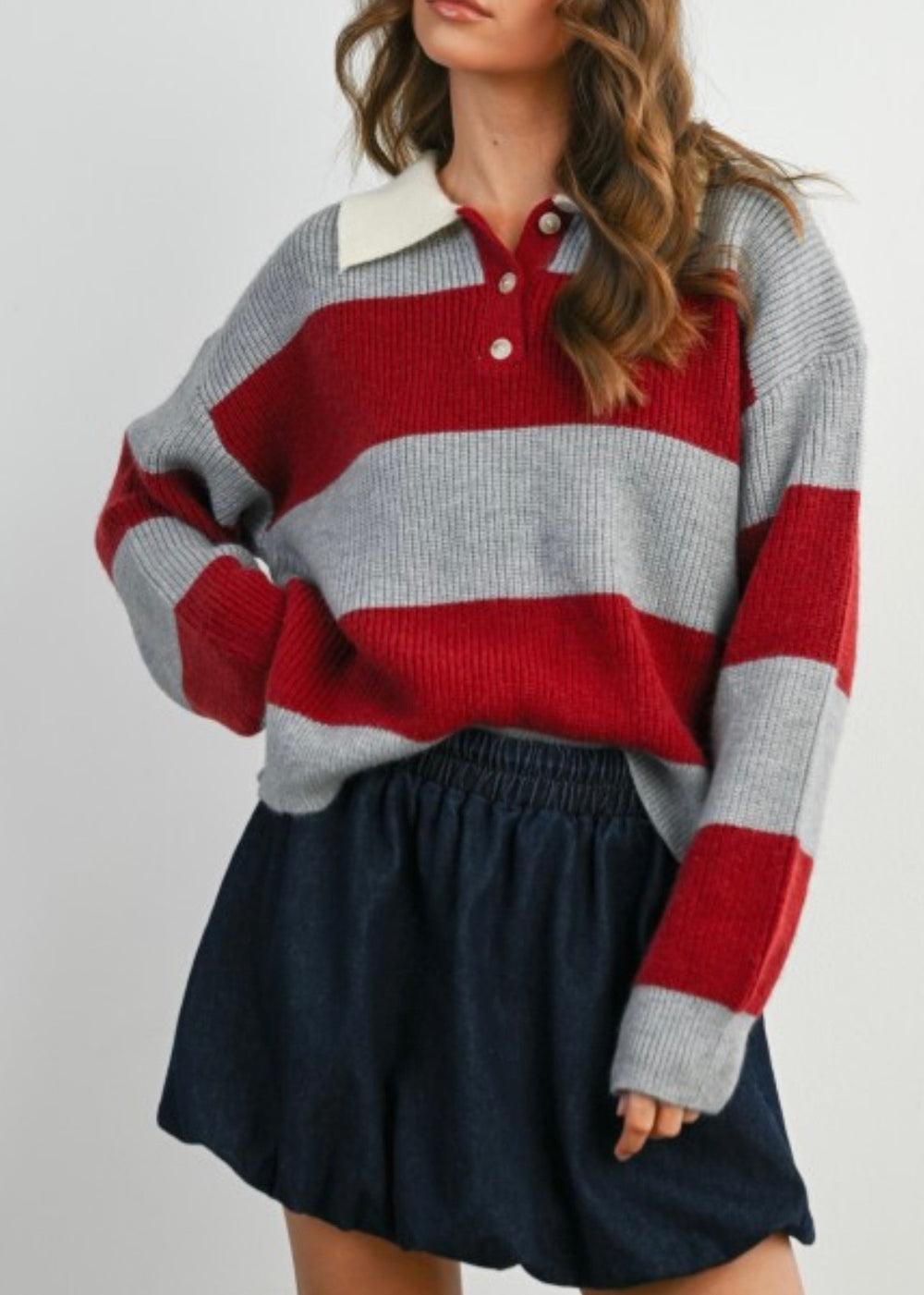Merlot Stripe Polo - S is backordered and will ship as soon as it is back in stock.