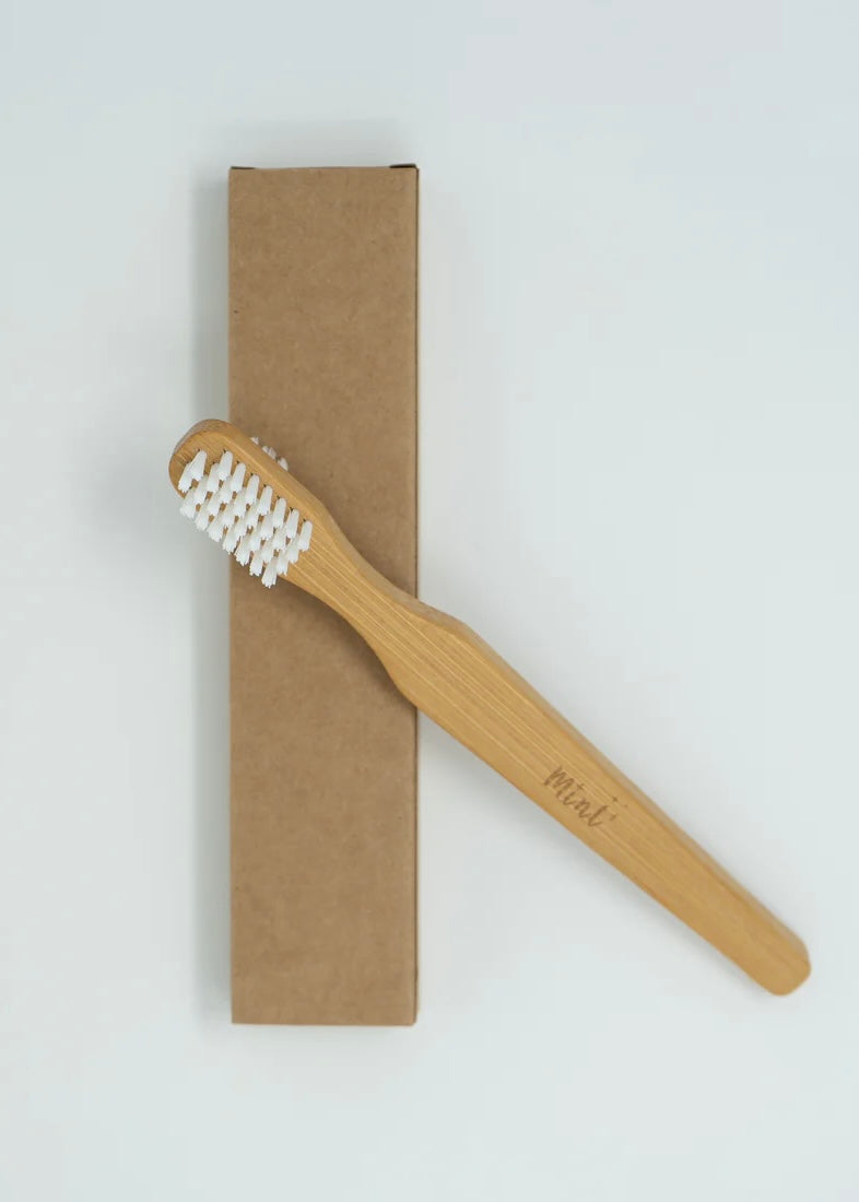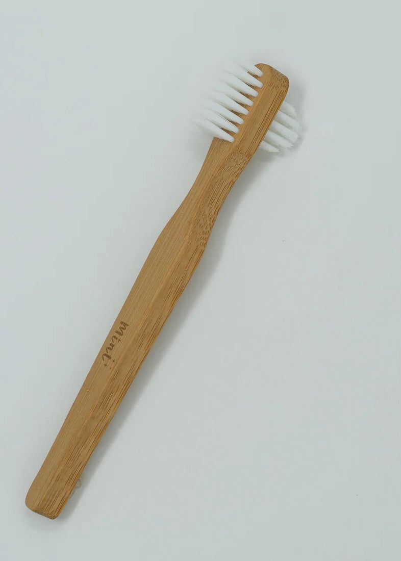 The custom designed Mint bamboo cleaning brush is a sustainable alternative to plastic brushes. Made from 100% biodegradable bamboo. Its minimalist design features soft bristles that effectively cleans all types of surfaces, including grout, sinks, upholstery, clothing stains, stove tops, window sills, and more. The bamboo handle is sturdy and comfortable to hold.