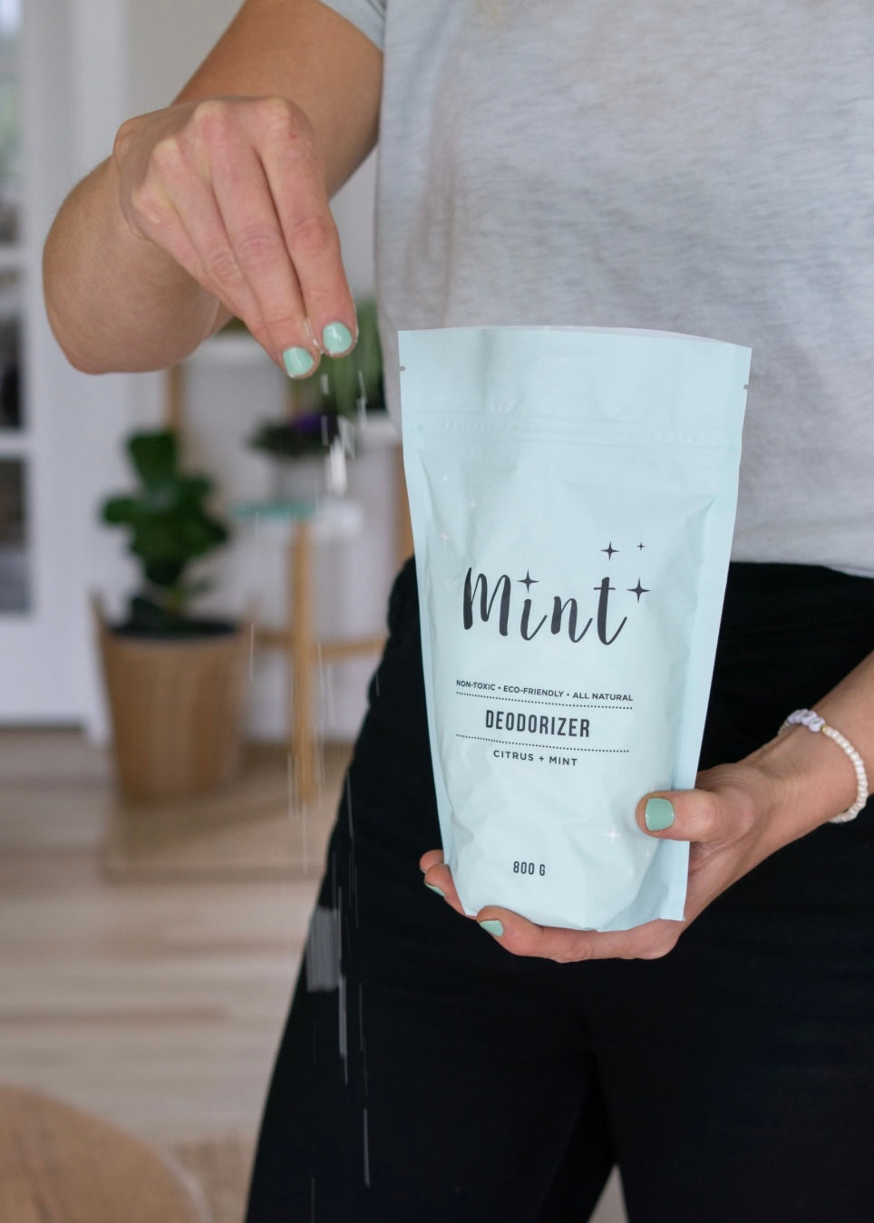 Great for eliminating odours on carpets, couches, mattresses, sinks, garbage bins etc. Infused with mint and citrus essential oils.