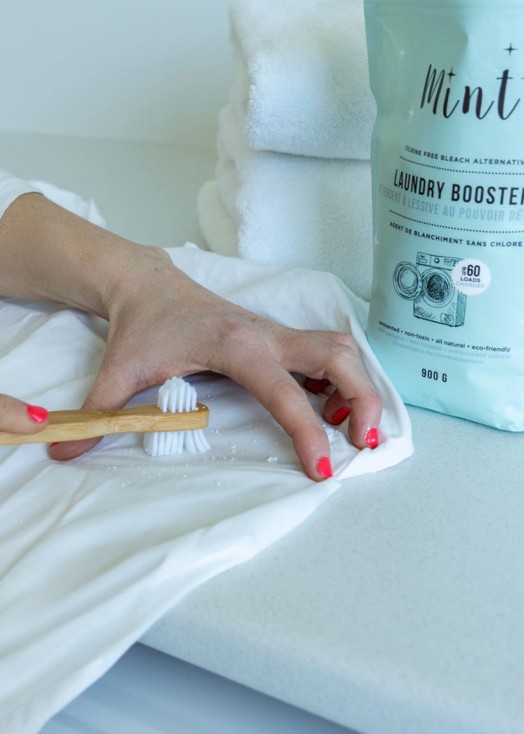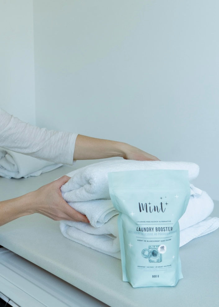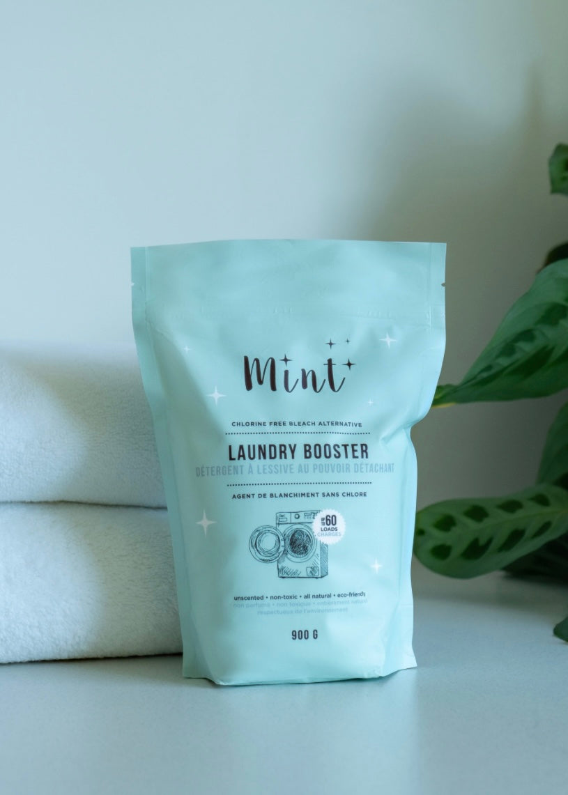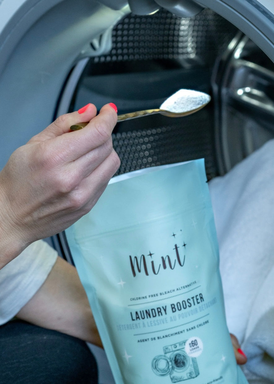 Mint Laundry Booster is a safe and natural bleach alternative that eliminates the toughest stains and odours. Formulated with simple, all natural ingredients that are optimized to make your whites and colours vibrant and feeling extra clean. No bleach, no dyes, no fragrances, just the good stuff! Safe for both HE and top loader machines. Septic safe and colour safe. The perfect pairing with your Mint Laundry Detergent.