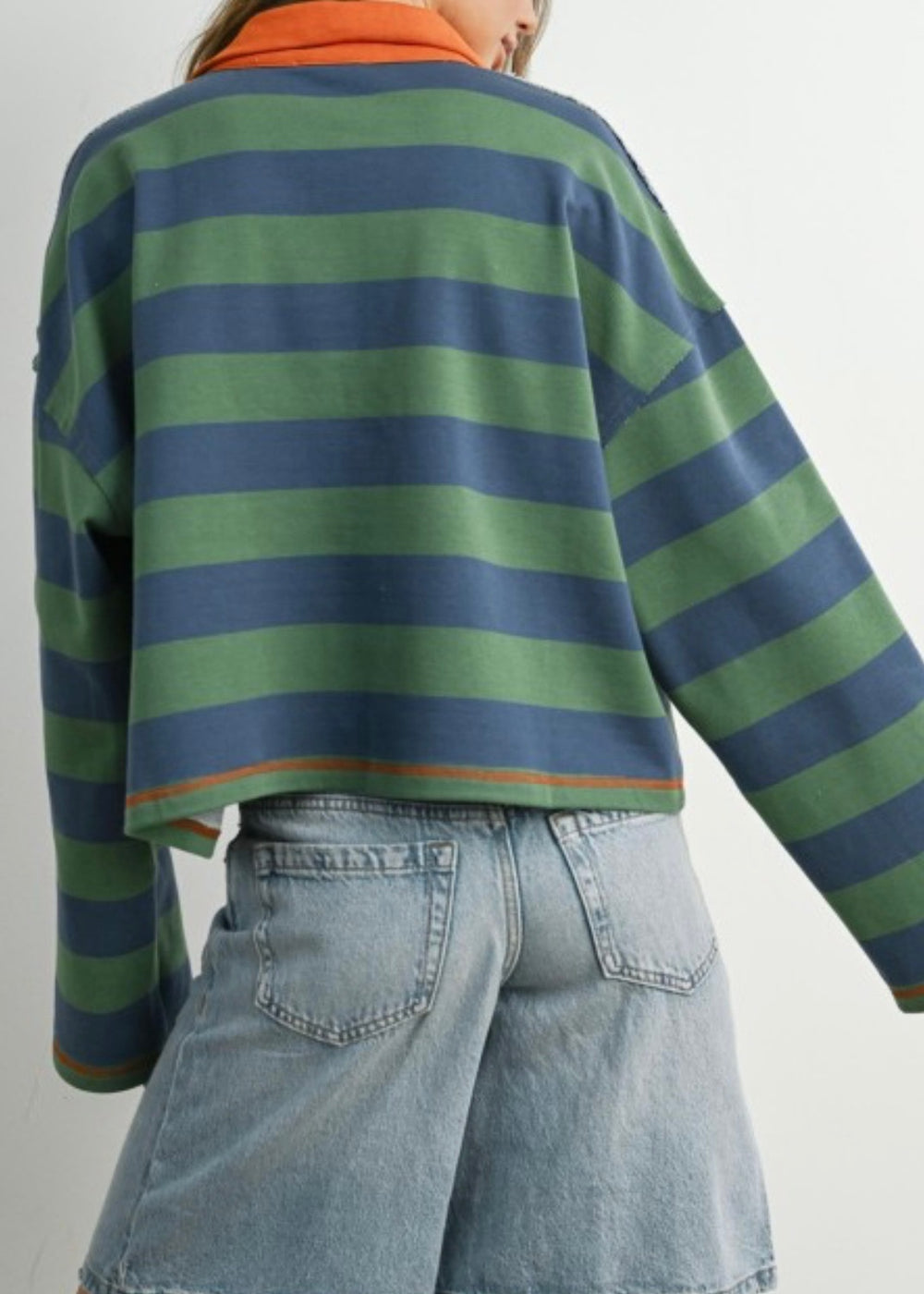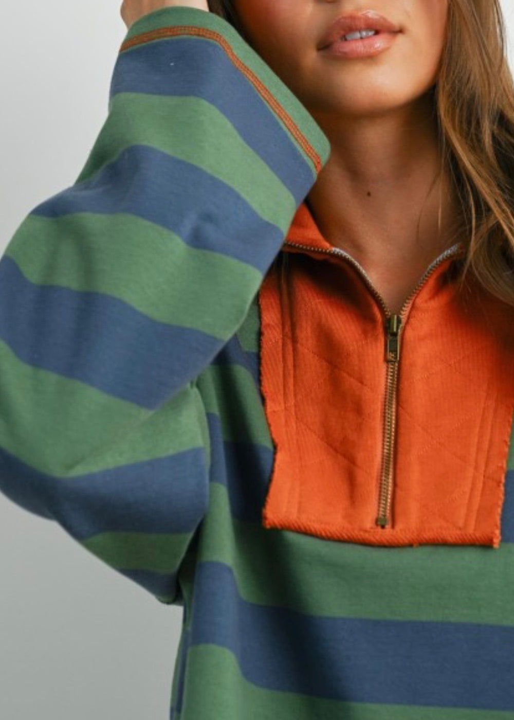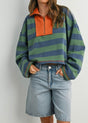 Rock a look that's equal parts laid-back and sharp with the Nola Quarter Zip. This striped sweatshirt flips the script with its eye-catching contrast collar and quarter-zip front—perfect for mixing up your style game. The blend of cotton, polyester, and spandex keeps things soft and stretchy, so you can move freely whether you're layering it up or flying solo. Throw it on for instant casual cool that works morning, noon, or night.
