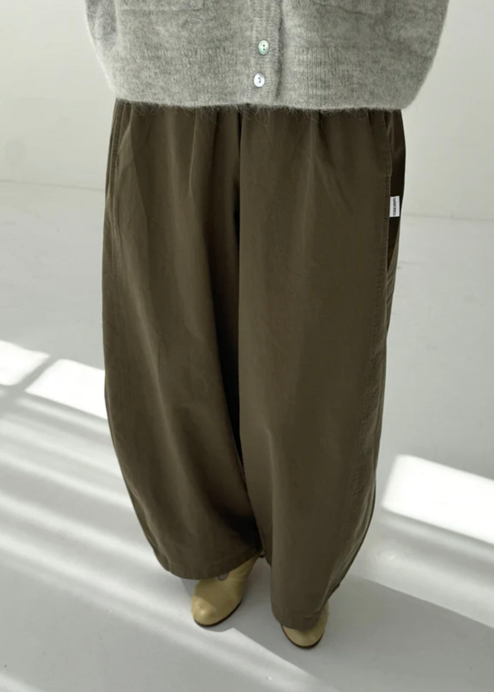 Billowy pants made to move with you throughout the day. Crafted from a light yet durable and elevated cotton they're the kind of pair you can wear anywhere, from casual moments to polished looks. Designed with an elastic waist and side pockets, their unique leg shape sets them apart. A third side panel adds extra volume, creating a sculptural silhouette that’s relaxed, airy, and full of movement.