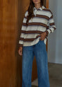The Perry Stripe Polo features a quarter-button placket and a collar neck, crafted from 100% cotton jersey knit. This long-sleeve pullover top includes an adjustable waist stopper for a tailored fit and showcases a classic striped design.