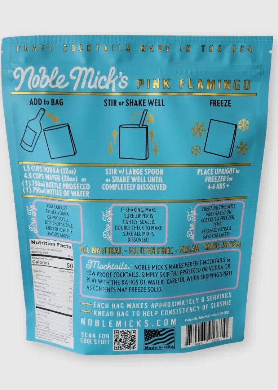 We couldn't just call it pink lemonade because it is so much more than that! A generous twist of lemon and lime on top of all that fresh pink lemonade. Frozen Cocktails don't get easier than this! Each bag makes 8 servings. No blenders ever! Simply add 1 bottle of Prosecco and 1 bottle of water or ratio of vodka to water in the instructions, shake or stir and throw in the freezer. Then serve right from the bag. Our Frozen cocktails are unique in you ONLY ever add water and spirit...NEVER any juice, mixers or additional flavors. That's one of the things that sets us apart. 100% all natural ingredients and perfect to share with friends and family at your next party.