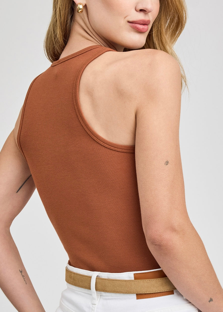 An easy, everyday high neck tank that is perfect for layering or being the base of any outfit.