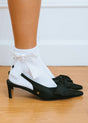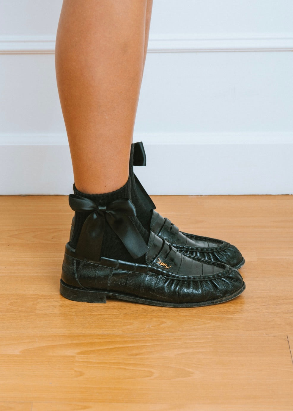 Satin Bow Sock - Black is backordered and will ship as soon as it is back in stock.