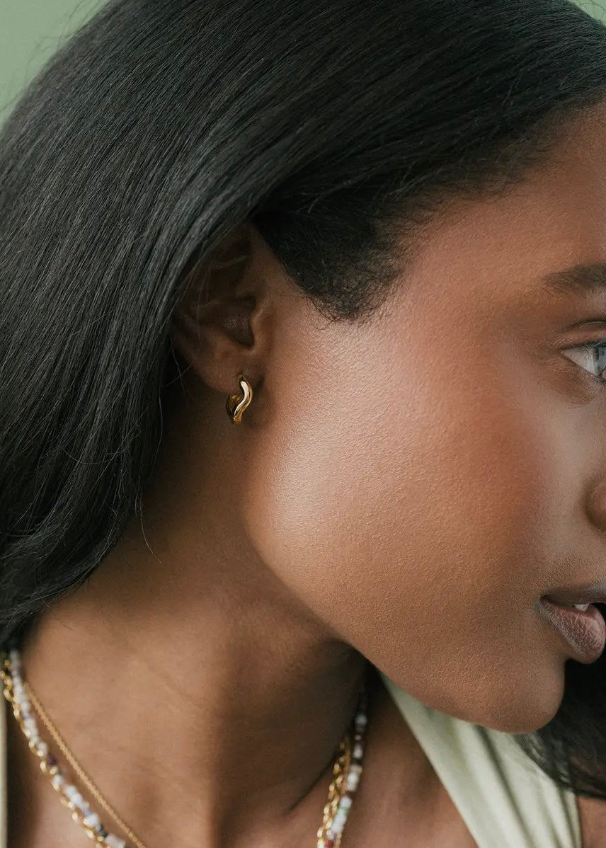 Regardless of our plating quality and protective coatings, these pieces need to be cared for to live their best lives. Do not wear your gold or silver-plated jewelry in water. Avoid contact with lotions, perfumes, oils, and sweat. These chemicals can dull your pieces and reduce their shine.