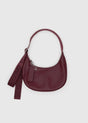 Our smaller crescent shape in recycled leather. Elevated, durable, and designed to fit the essentials. Features an interior zip pocket and thoughtful additions like a key leash and debossed keychain.