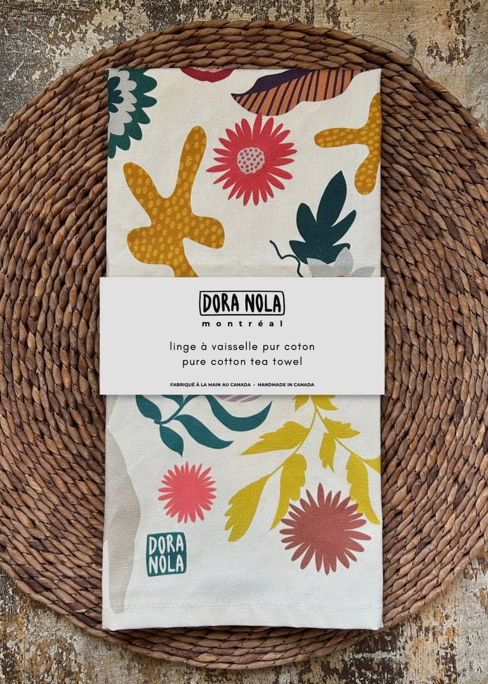 Get ready to add a touch of whimsy to your culinary adventures with the Stories Light Tea Towel. Made from 100% cotton and adorned with original Dora Nola artwork, this towel brings a refined yet playful spin to your kitchen routine. (Warning: may induce spontaneous dancing while cooking!) * Approximately 16”x25” * Made in Canada * 100% cotton * Machine washable * Cotton hanging ribbon in one corner care instructions: * Machine wash * Tumble dry low to avoid shrinkage. * Wash before first use to ensure maximum absorption.