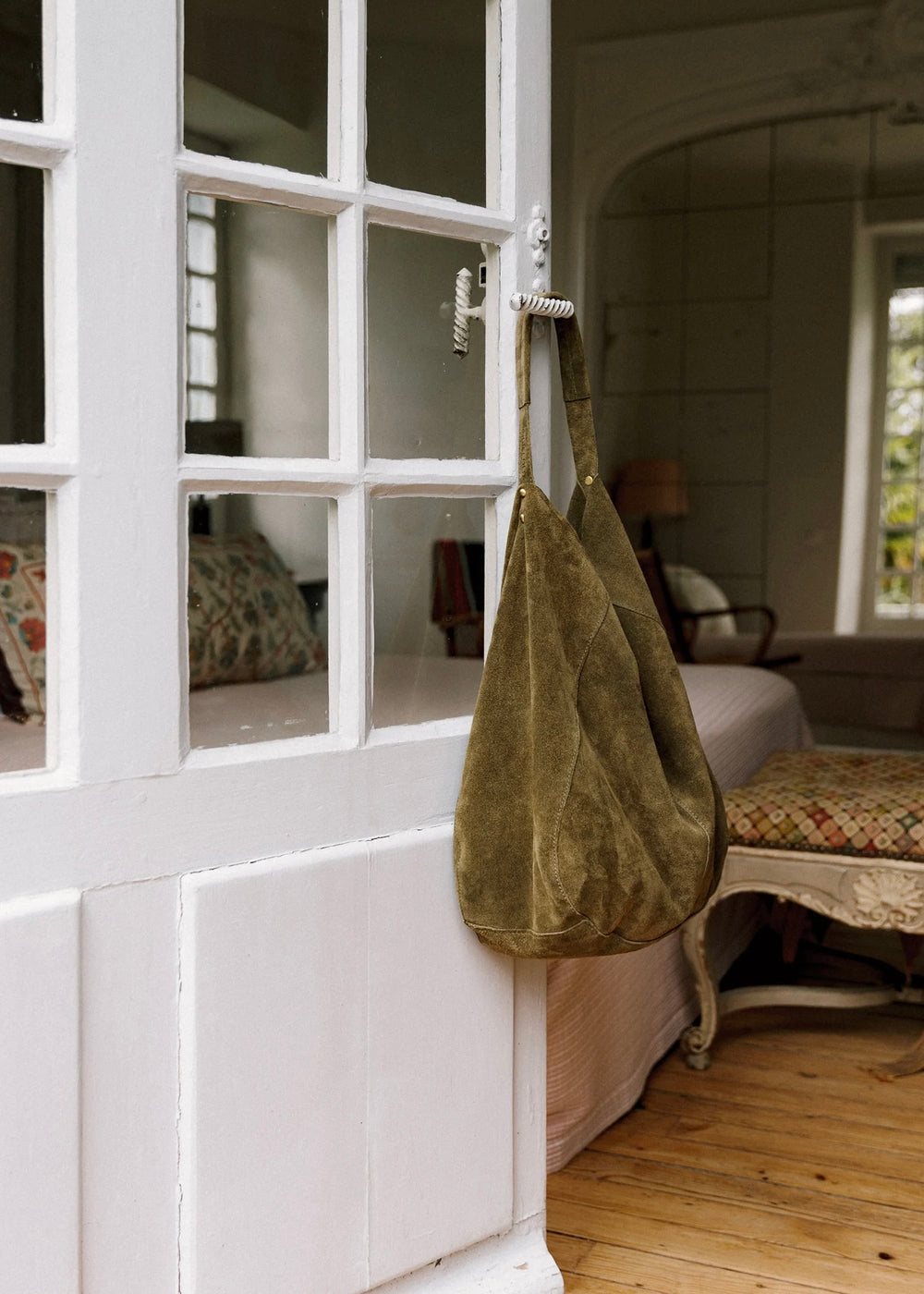 Suede Tote Bag - Khaki is backordered and will ship as soon as it is back in stock.