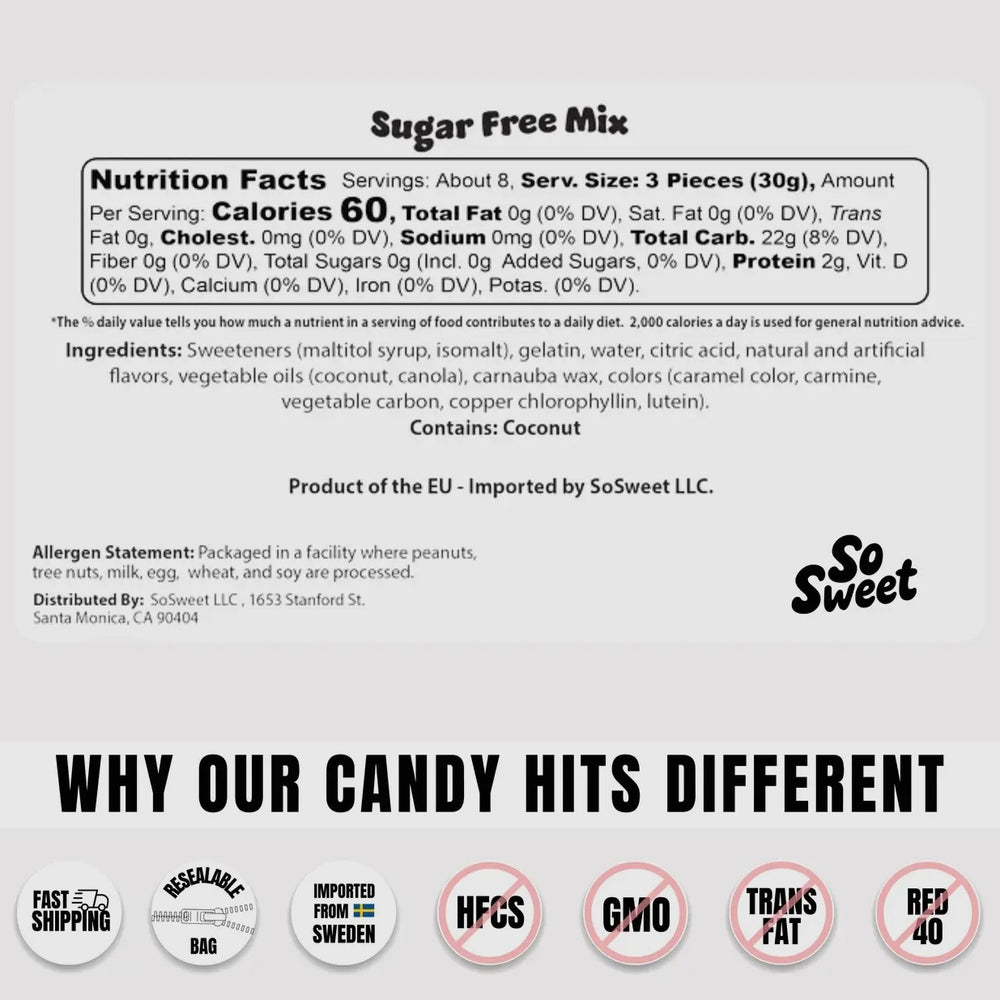Swedish Candy Sugar-Free Mix (8 oz) - SugarFreeMix is backordered and will ship as soon as it is back in stock.