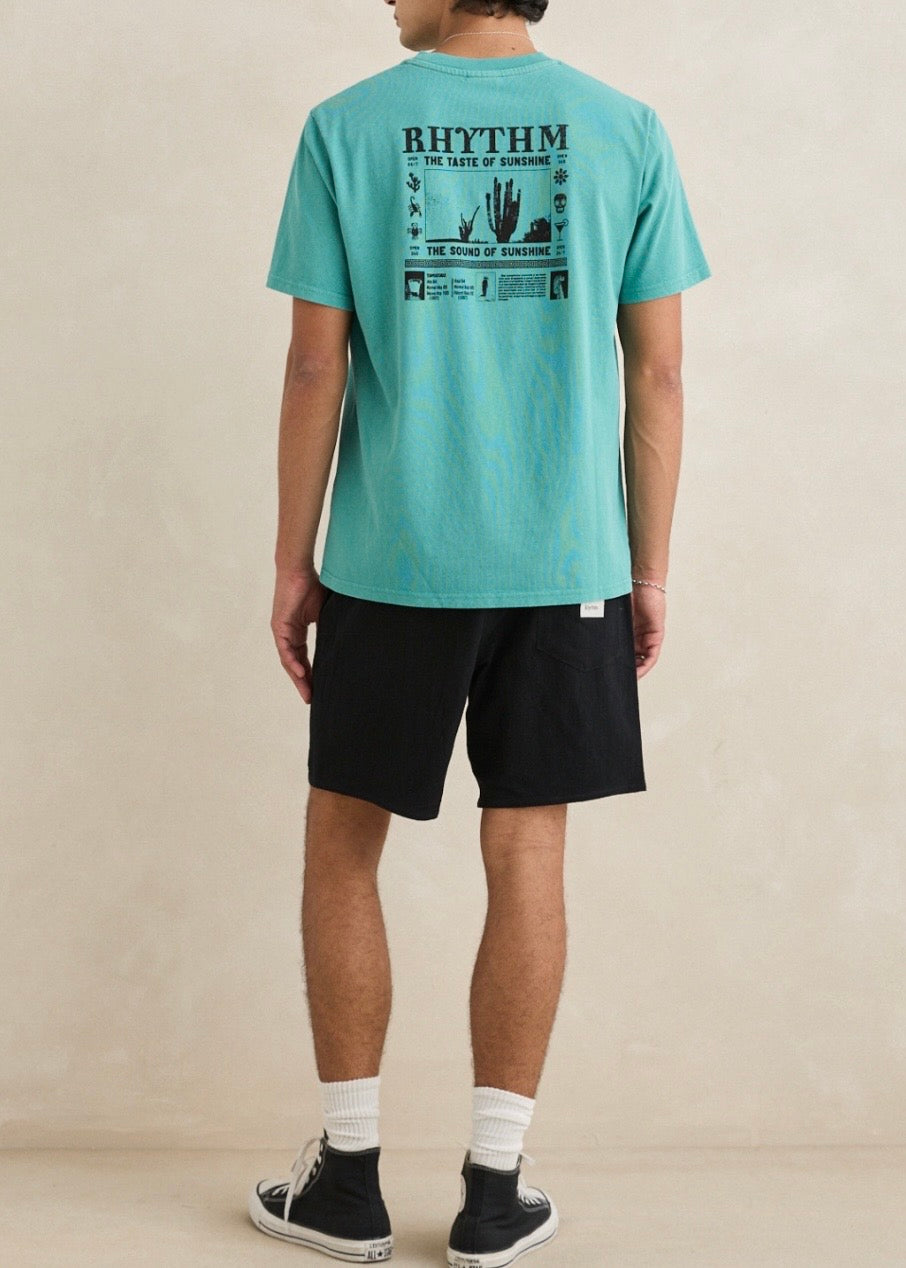 TEXTURED LINEN BLEND 17 INCH OUTSEAM,STANDARD FIT, ELASTIC WAISTBAND, COTTON DRAWSTRING, SIDE SEAM HAND POCKETS, BACK PATCH POCKET,RHYTHM LABELS & TRIMS