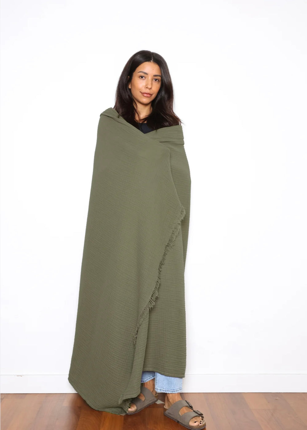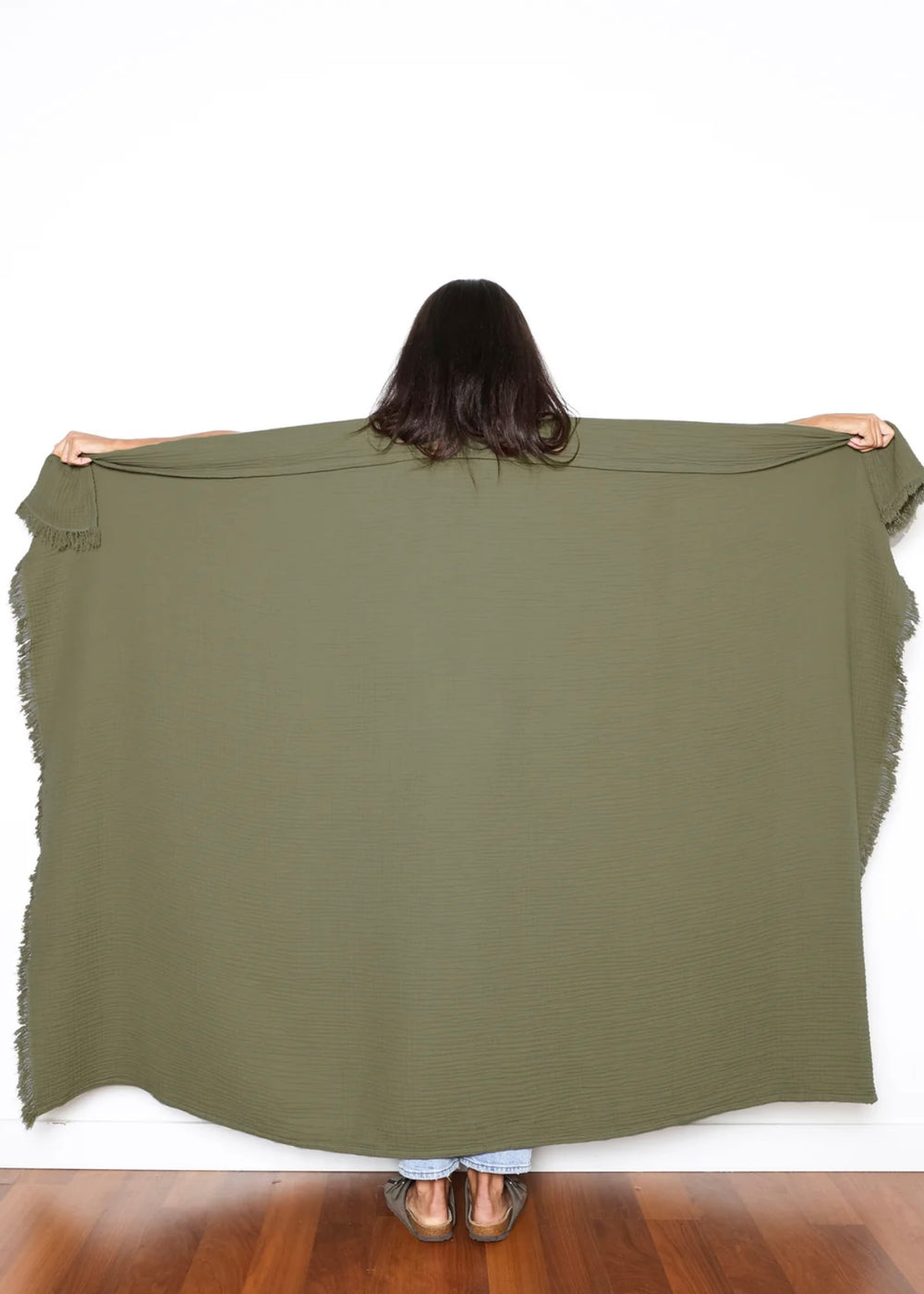 The Capella Muslin Throw - Moss is backordered and will ship as soon as it is back in stock.