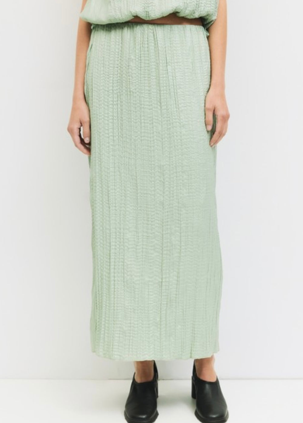 The Dunn Skirt is a flowing maxi skirt crafted from lightweight, textured fabric with crisp broomstick pleats for added movement. Finished with a comfortable waist band, it pairs effortlessly with The Dunn Top (TR3922). Style Number: SK2168 Self: 100% Polyester Lining: 100% Rayon