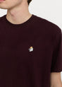 Loose-fitted t-shirt with a round neck and short sleeves, made in a mélange organic cotton-jersey, with a weight of 200 GSM. The t-shirt features a small fun, colorful embroidery on the chest, a rib collar and the hem is made with a twin needle stitch. The finishing of the t-shirt adds softness and ensures stability and durability to the style