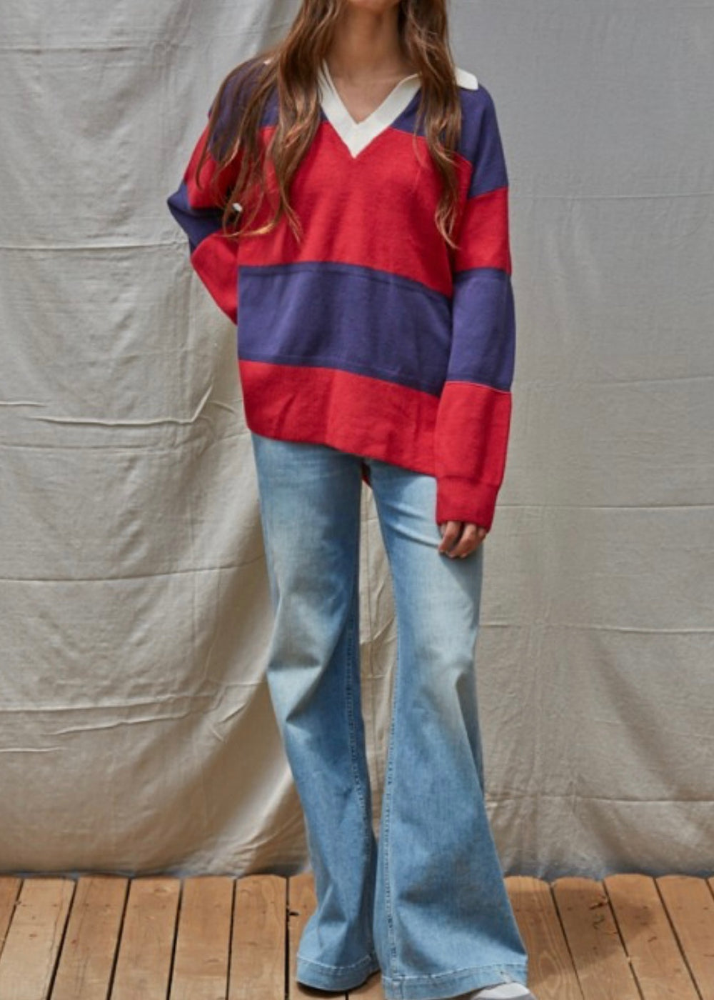 Make a statement with the Touchline Rugby Long Sleeve—a striped knit sweater that blends athletic heritage with modern comfort. This collared pullover showcases bold horizontal stripes, a flattering V-neck, and convenient side slits for easy movement. Built from a premium mix of viscose, polyester, and nylon, it's soft enough for all-day wear yet structured enough to hold its shape. Layer it over a crisp white tee or wear it standalone for that effortlessly cool, preppy-meets-sporty aesthetic. A versatile wardrobe essential that works as hard as you do.