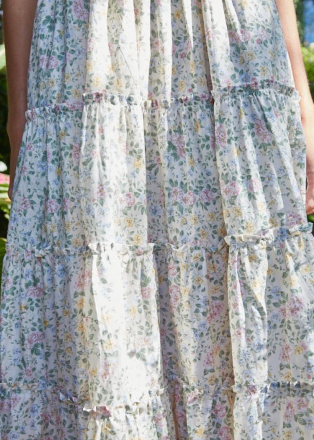 Sunshine and smiles come standard with the Villa Smocked Dress. This breezy midi features a vibrant floral print on 100% cotton, complete with a charming smocked bodice, tiered layers, and delicate ruffled sleeves that frame the square neckline beautifully. Slip your phone and keys into the hidden side pockets, and let the rayon lining keep you cool all day long. Whether you're sipping lemonade on the porch or exploring the farmers market, this dress is your new summer staple.